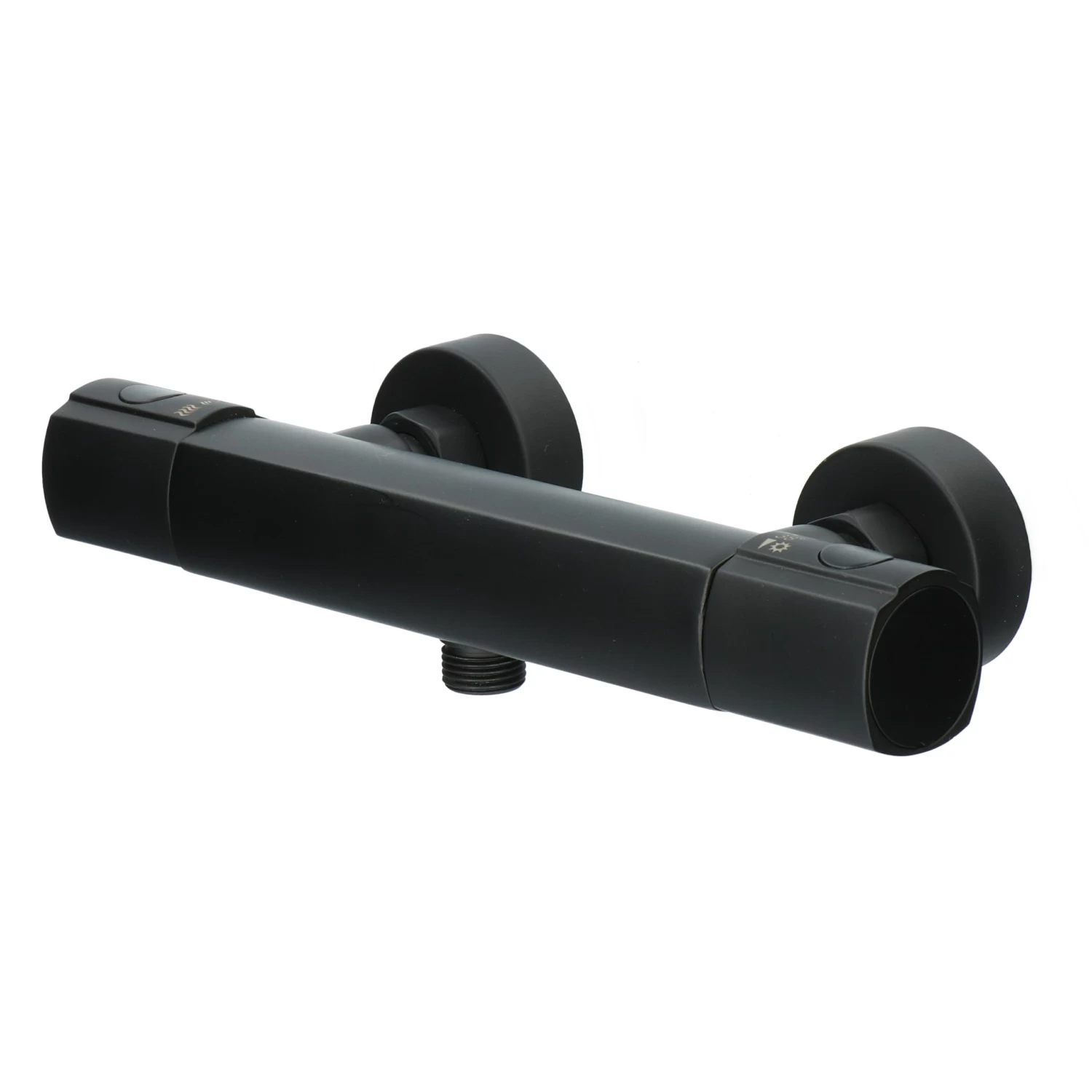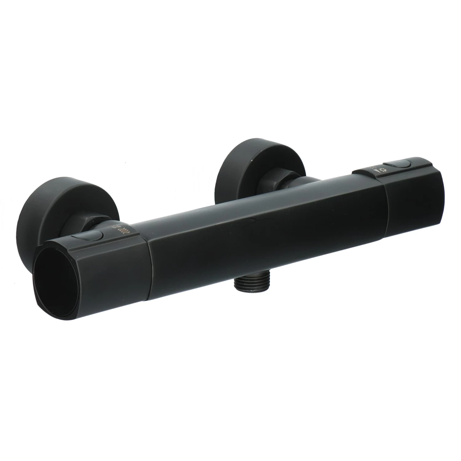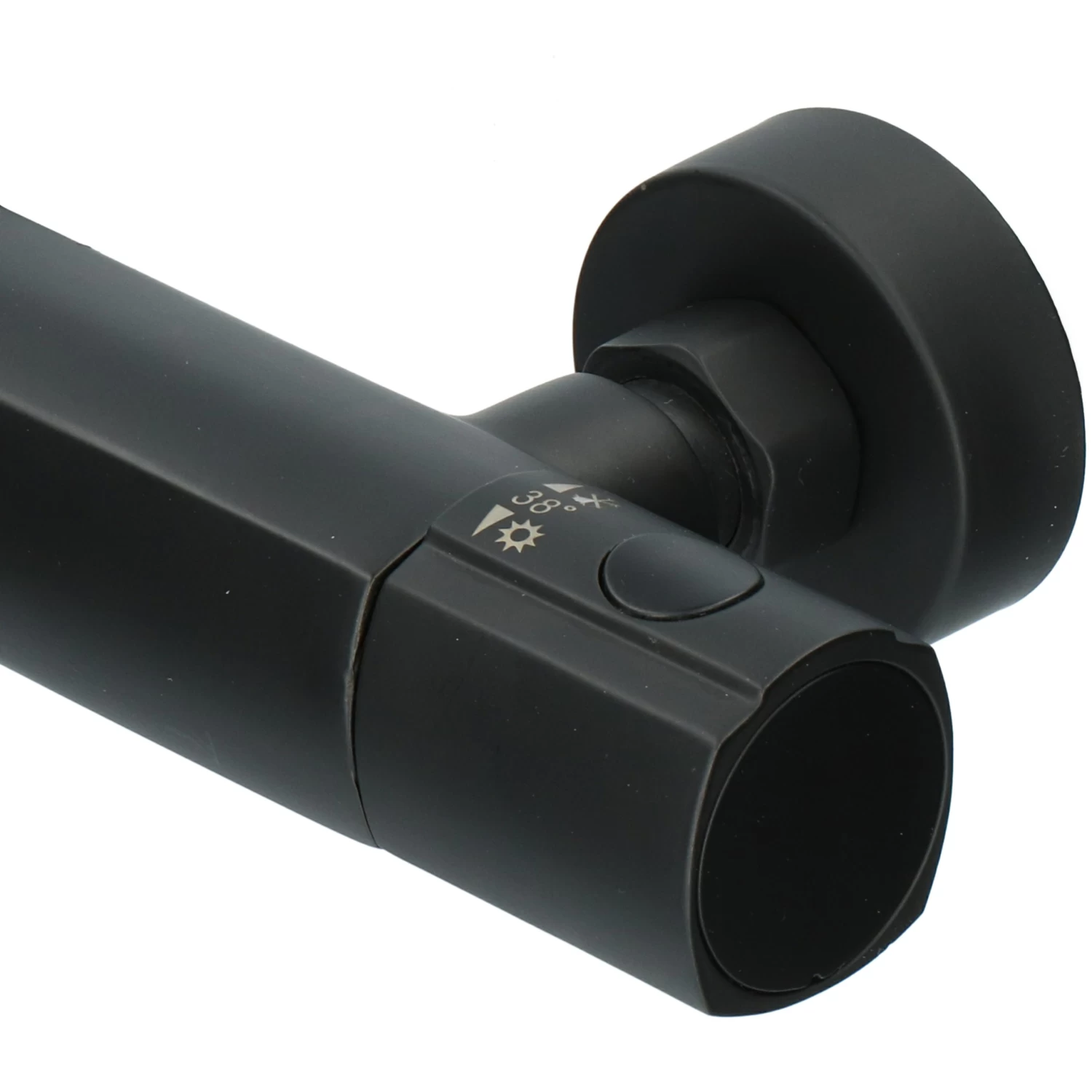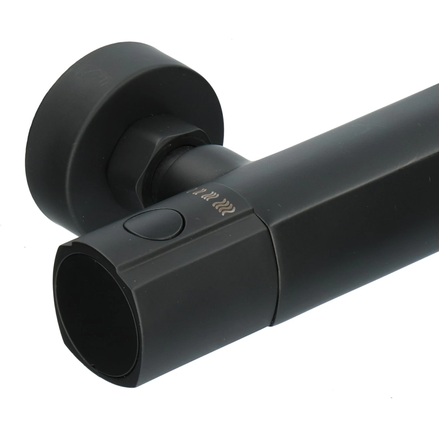 De Absolut Absi thermostatische douchekraan Zwart past perfect in een industriële of landelijke badkamer. Dat komt door de tijdloze vormgeving en de mat zwarte afwerking; het geeft deze stoere kraan een robuuste uitstraling.