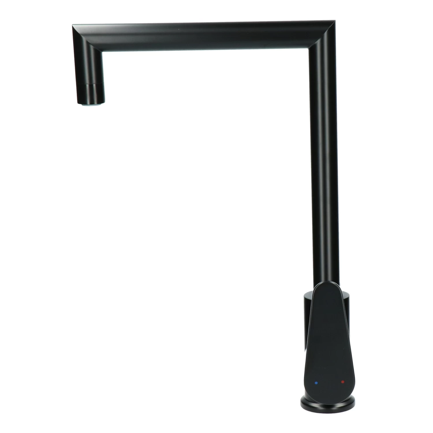 ComfortDe Absolut Fasso éénhendel keukenkraan Zwart is een echte eye-catcher in de keuken met de hoge en hoekige uitloop. Met het strakke design en de mat zwarte afwerking oogt het robuust en is het een must-have in de landelijke of industriële keuken. Mocht een andere kleur beter passen in het interieur, dan is er ook een chromen of grafieten variant te kopen bij Karwei.