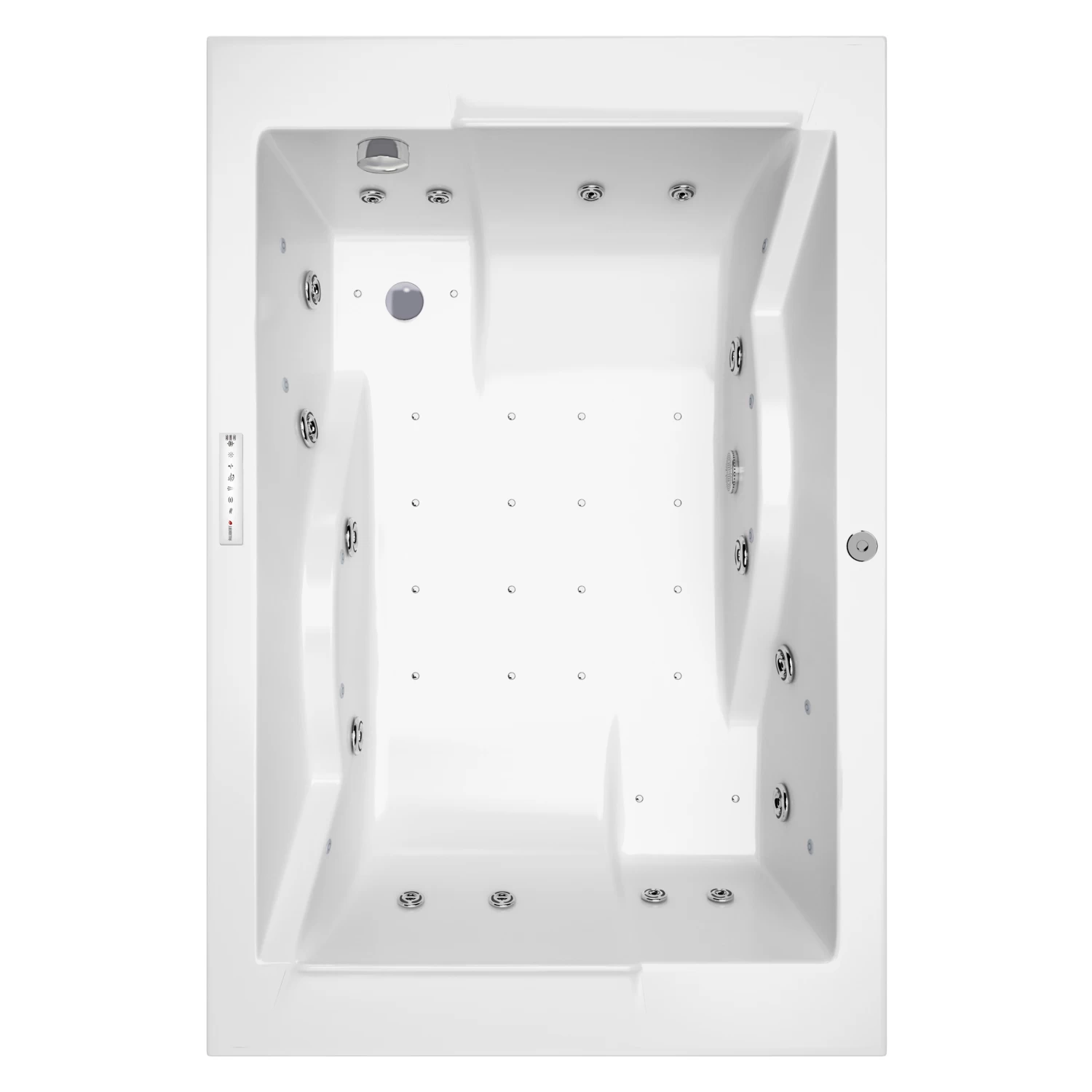 Het bubbelbad van 44 cm diep heeft plaats voor 2 personen, zo kun je gezellig sámen genieten van een intense bad-ervaring. Je zit lekker met de geïntegreerde armsteunen en je blijft goed zitten met de anti-slipvoorziening in het bad. De 8 zijdelingse grote waterjets en de 8 regelbare waterjets in de rug/ voeten zorgen samen voor een watermassage over je hele lijf. Je lymfen worden geactiveerd om afvalstoffen en overtollig vocht af te scheiden door de 20 extra platte luchtjets op de bodem van het ligbad. En met een druk op de knop van het electronisch bedieningspaneel kies je eenvoudig uit maar liefst 7 verschillende functies: je hoeft er je bad niet voor uit! Kies bijvoorbeeld voor een extra lichttherapie met de 10 LED-spots met 8 kleuren. Of voor een lekker geurtje met de aroma therapeutische aromalis. Wil je het bad extra romantisch maken voor je partner met een lekker muziekje? Ook dat kan via een bluetooth verbinding met je installatie. Kies voor een extra verrijking met zuurstof voor een betere huidreiniging, een automatisch massagesysteem of een turbo stand. Voor elke stemming heeft dit bad wat te bieden.