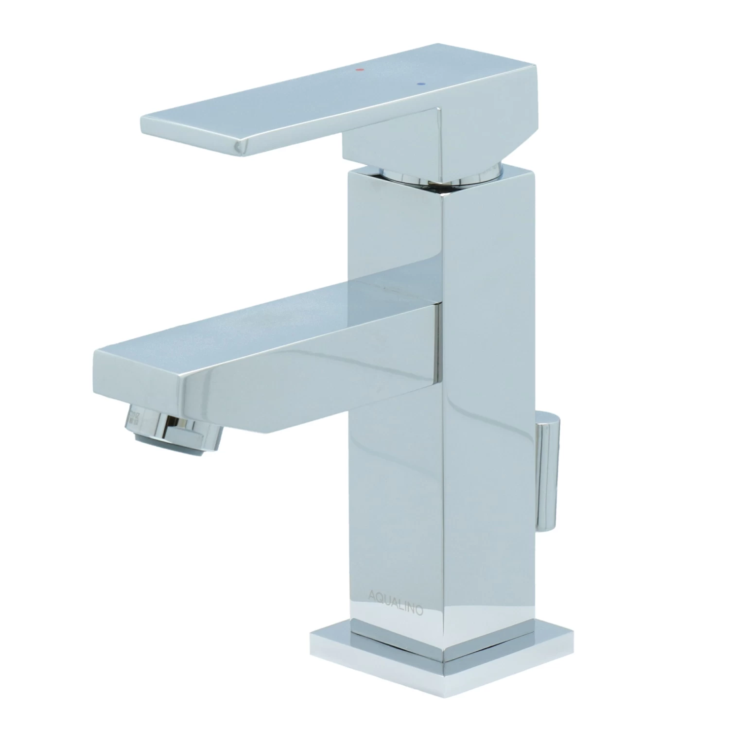 De Aqualino Panaro éénhendel wastafelkraan is strak, met kubistische lijnen. Deze eigentijdse kraan heeft een éénhendelbediening dat zorgt voor een eenvoudigere menging van koud en warm water. De kraan is tevens voorzien van keramische schijven die zorgen voor een soepele en nauwkeurige bediening van de knoppen. In tegenstelling tot kranen met kraanleertjes, vergen keramische schijven nauwelijks onderhoud.
