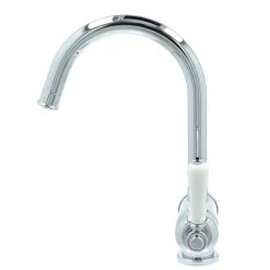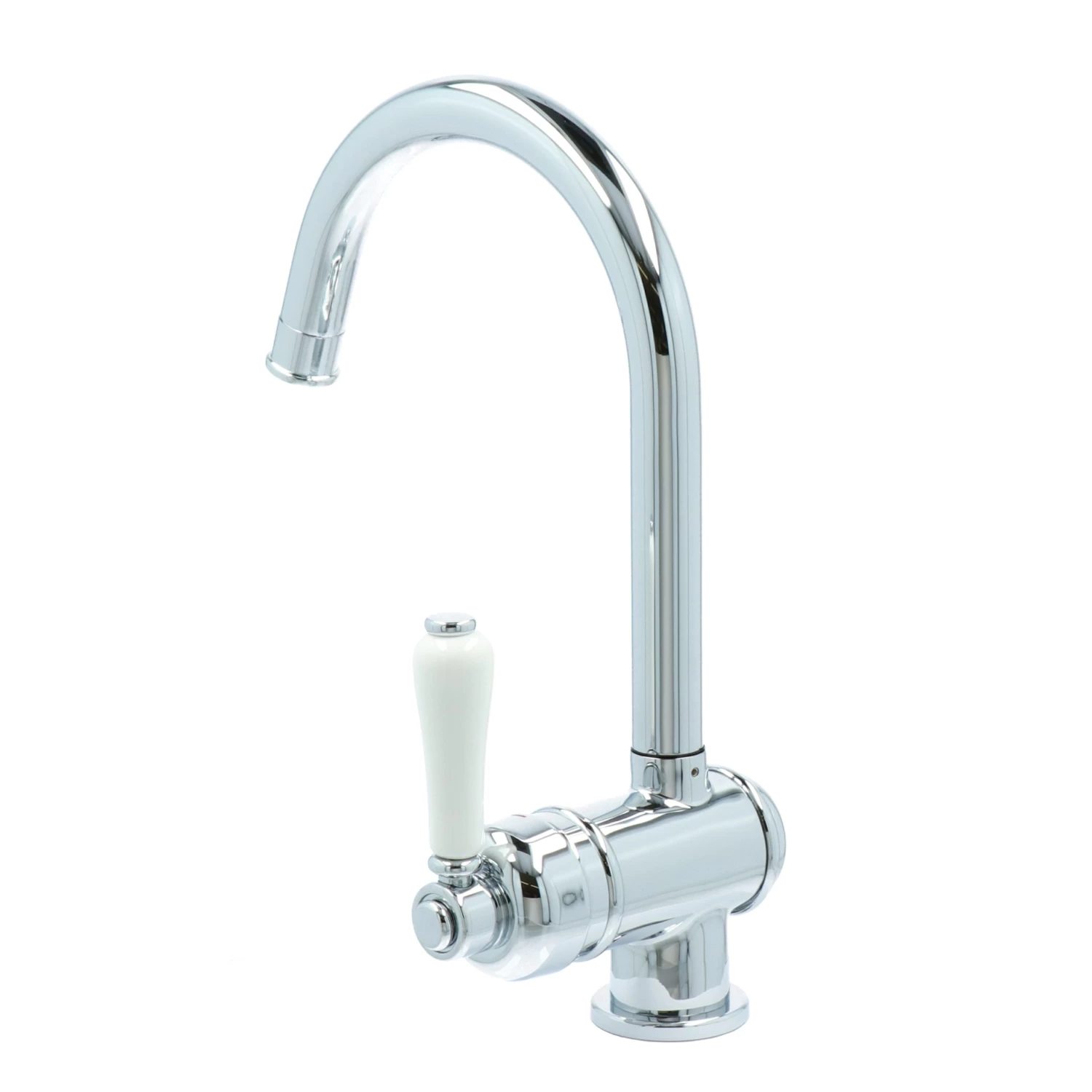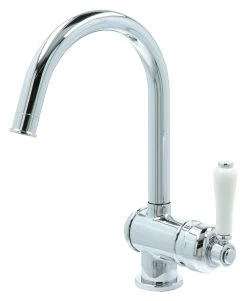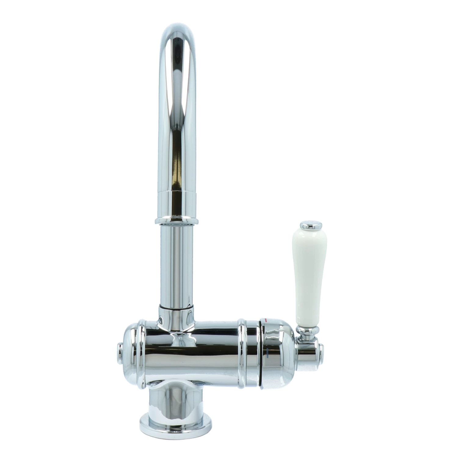 De Atlantic Charles éénhendel keukenkraan Chroom kenmerkt zich met een retro design met de klassieke handgreep en elegante rondingen, en heeft een mooie glanzende chromen afwerking. Een onmisbare aanvulling in elk klassiek of retro keukeninterieur. De éénhendelbediening zorgt voor een eenvoudigere menging van koud en warm water. De 360° draaibaarheid van de kraan geeft veel ruimte in de gootsteen. Bovendien zorgen de keramische schijven voor een soepele en nauwkeurige draaiing en deze vergen nauwelijks onderhoud. Het beste wordt de kraan gereinigd met alleen water en een zachte doek. Kalk is makkelijk met de hand van de antikalkperlator af te vegen. Meer is niet nodig!