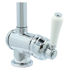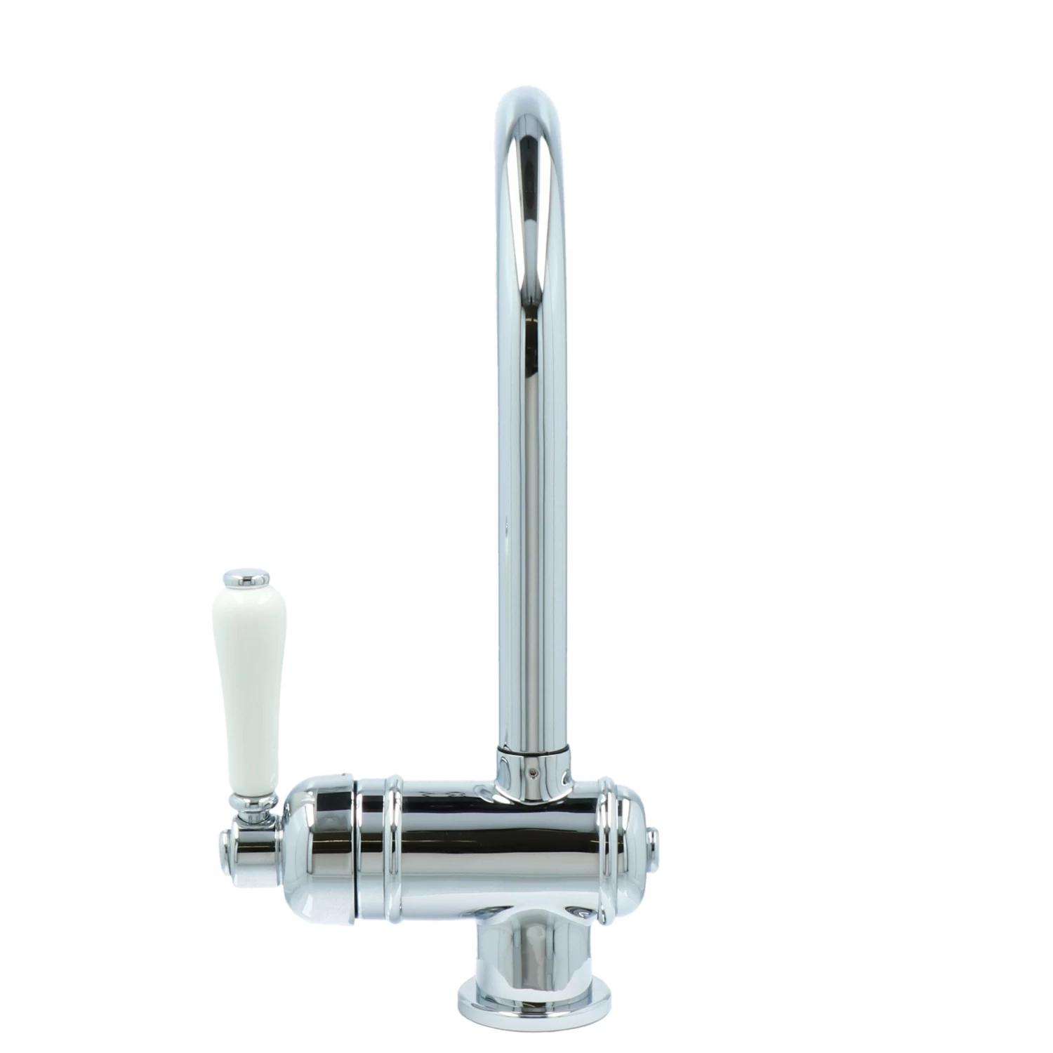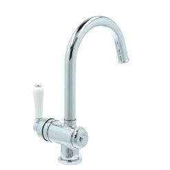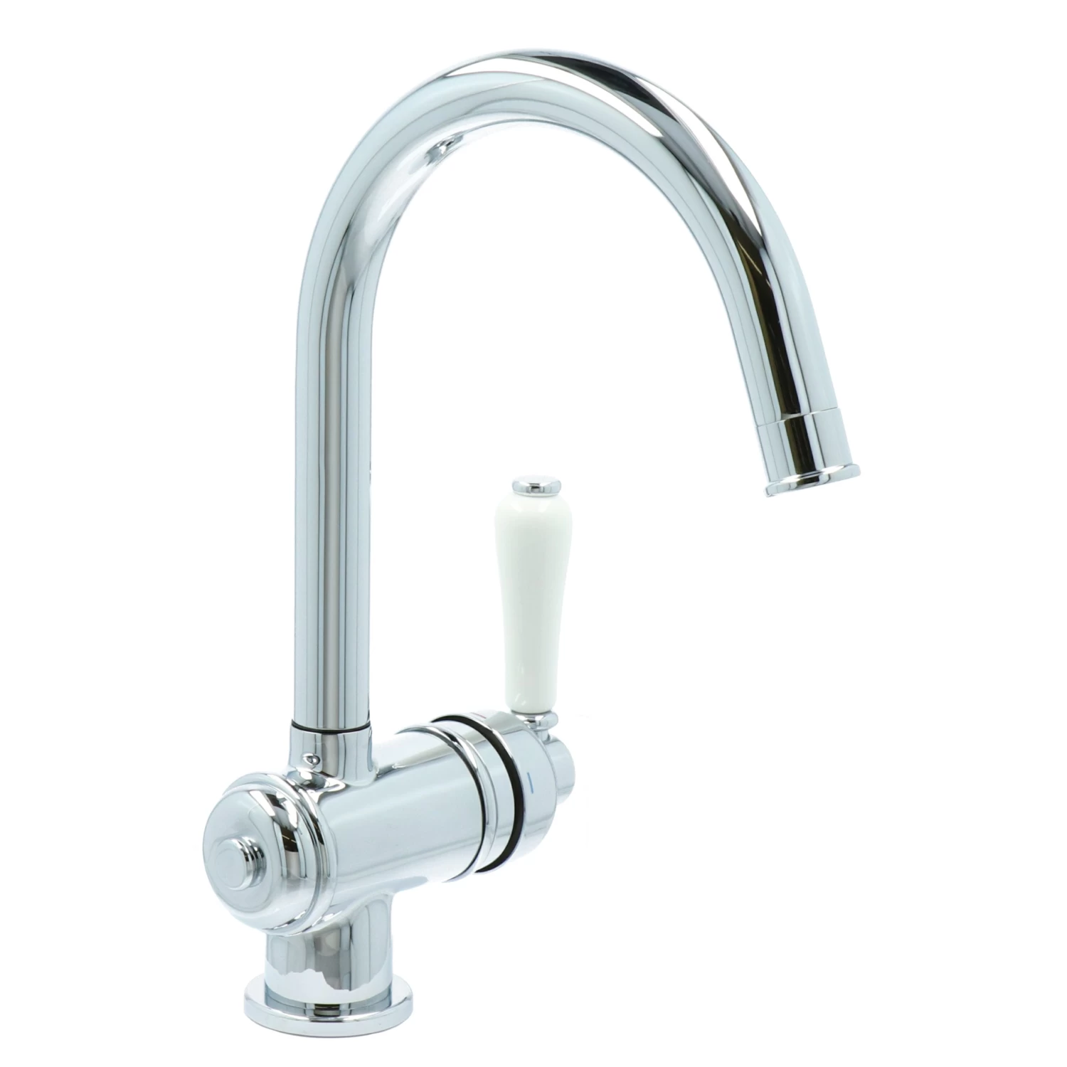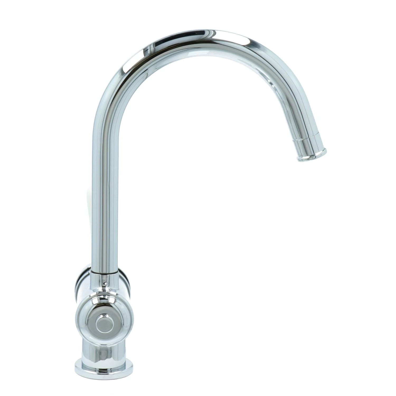 De Atlantic Charles éénhendel keukenkraan Chroom kenmerkt zich met een retro design met de klassieke handgreep en elegante rondingen, en heeft een mooie glanzende chromen afwerking. Een onmisbare aanvulling in elk klassiek of retro keukeninterieur. De éénhendelbediening zorgt voor een eenvoudigere menging van koud en warm water. De 360° draaibaarheid van de kraan geeft veel ruimte in de gootsteen. Bovendien zorgen de keramische schijven voor een soepele en nauwkeurige draaiing en deze vergen nauwelijks onderhoud. Het beste wordt de kraan gereinigd met alleen water en een zachte doek. Kalk is makkelijk met de hand van de antikalkperlator af te vegen. Meer is niet nodig!