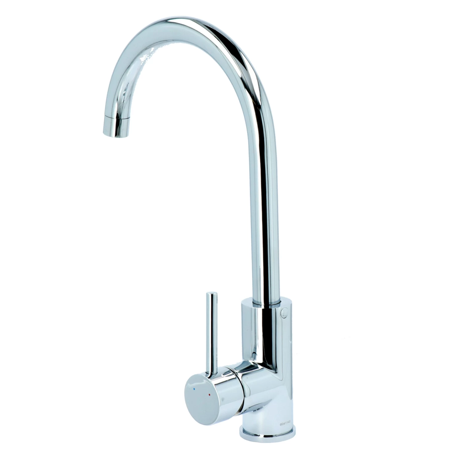 De Atlantic Colin éénhendel keukenkraan Chroom heeft een eigentijds ontwerp en kenmerkt zich met een moderne uitstraling door zijn glanzend chromen afwerking. Ook verkrijgbaar zijn zwart, RVS en messing. De éénhendelbediening zorgt voor een eenvoudigere menging van koud en warm water. De decoratieve hoge uitloop in combinatie met de 360° draaibaarheid van de kraan geeft veel ruimte in de gootsteen. Bovendien zorgen de keramische schijven voor een soepele en nauwkeurige draaiing en deze vergen nauwelijks onderhoud. Het beste wordt de kraan gereinigd met alleen water en een zachte doek. Kalk is makkelijk met de hand van de antikalkperlator af te vegen.