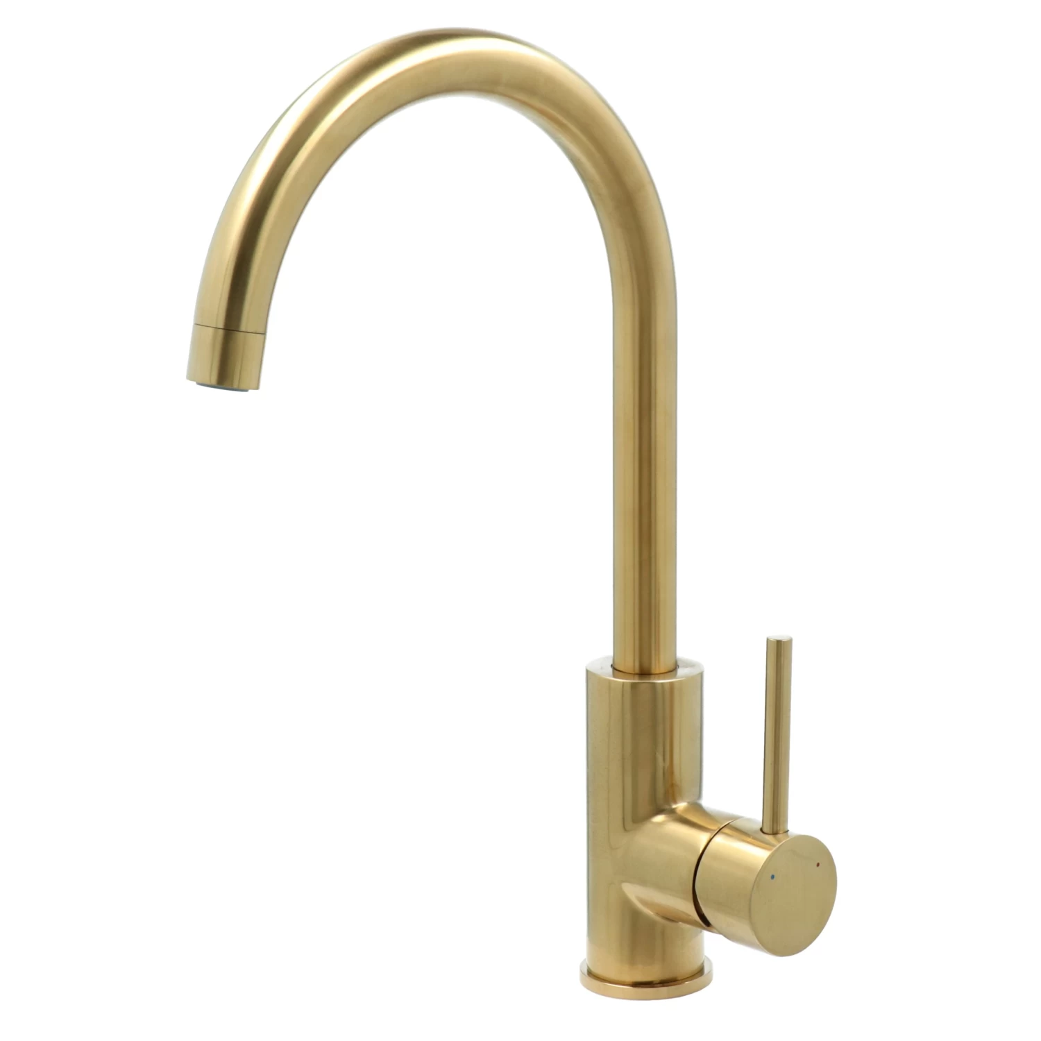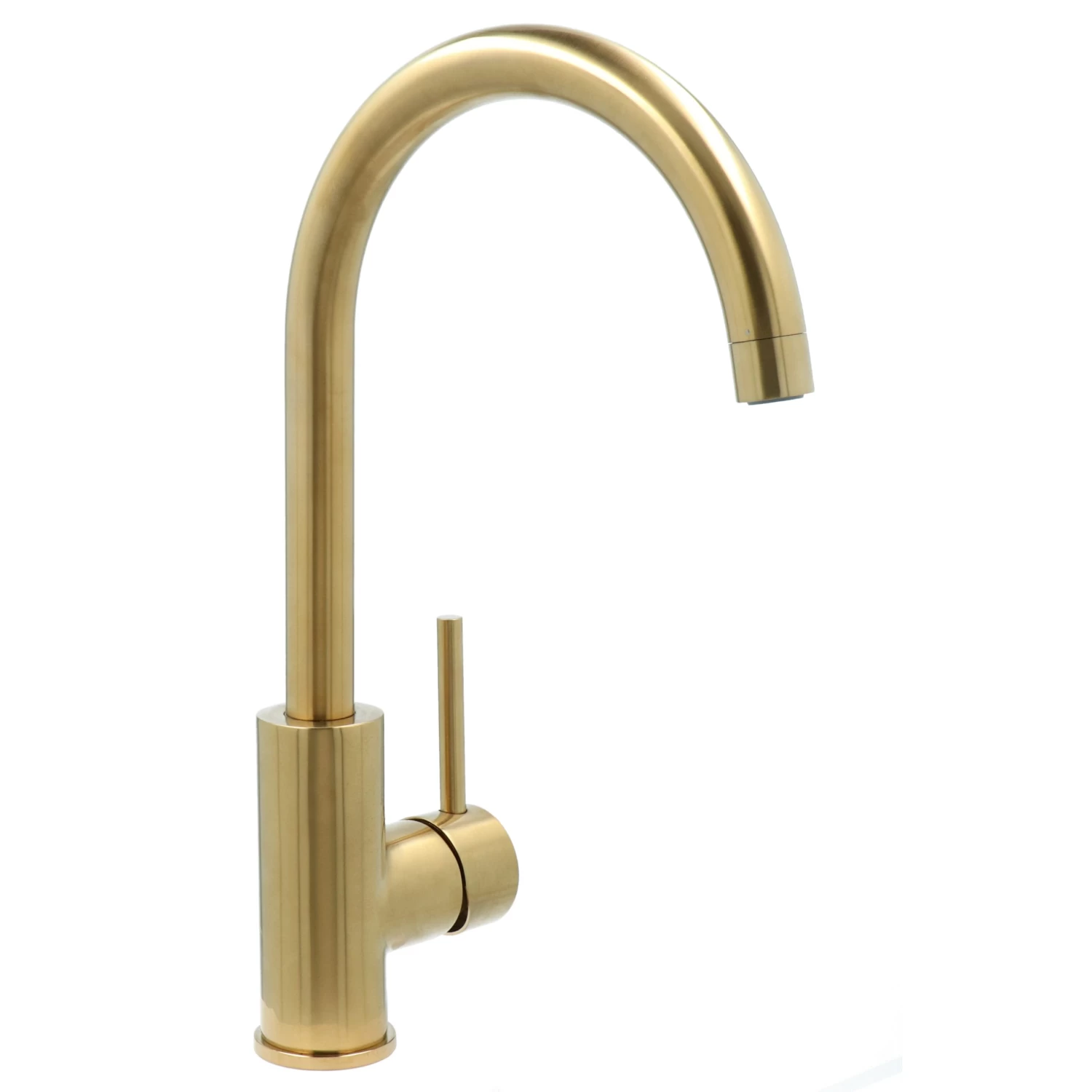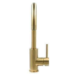 De Atlantic Colin éénhendel keukenkraan Messing heeft een eigentijds ontwerp en kenmerkt zich met een luxe uitstraling door zijn geborstelde goudkleurige afwerking. Ook verkrijgbaar zijn zwart, RVS en chroom. De éénhendelbediening zorgt voor een eenvoudigere menging van koud en warm water. De decoratieve hoge uitloop in combinatie met de 360° draaibaarheid van de kraan geeft veel ruimte in de gootsteen. Bovendien zorgen de keramische schijven voor een soepele en nauwkeurige draaiing en deze vergen nauwelijks onderhoud. Het beste wordt de kraan gereinigd met alleen water en een zachte doek. Kalk is makkelijk met de hand van de antikalkperlator af te vegen.