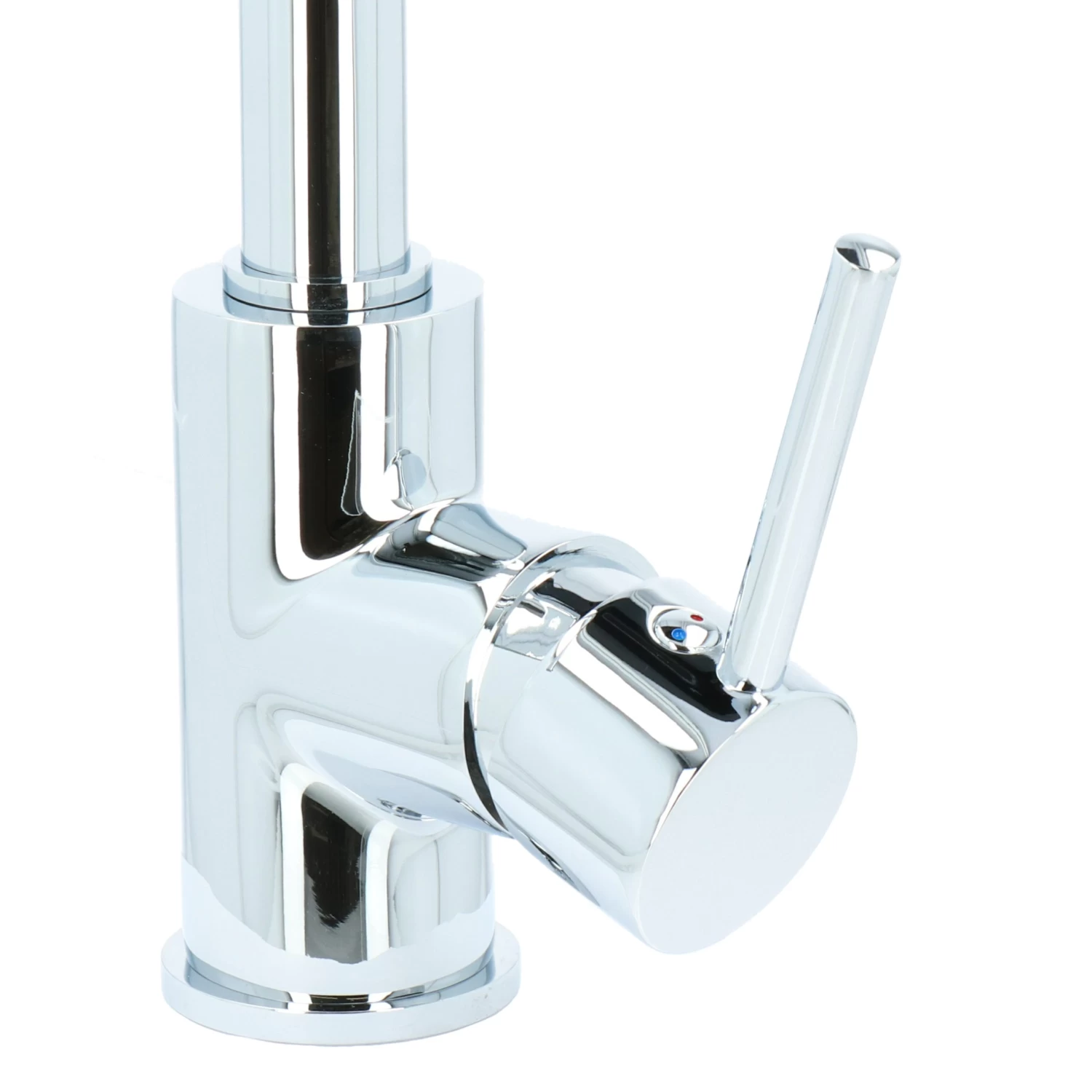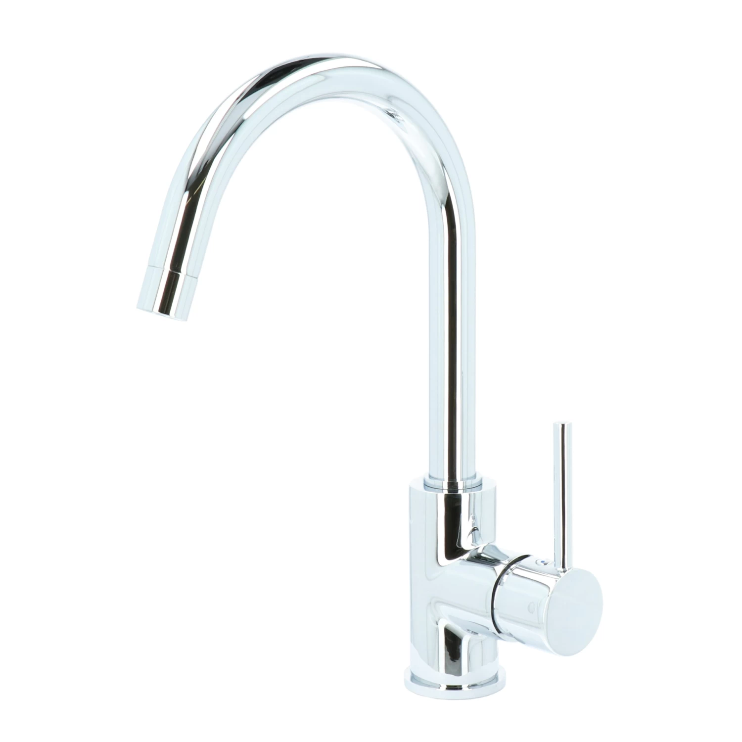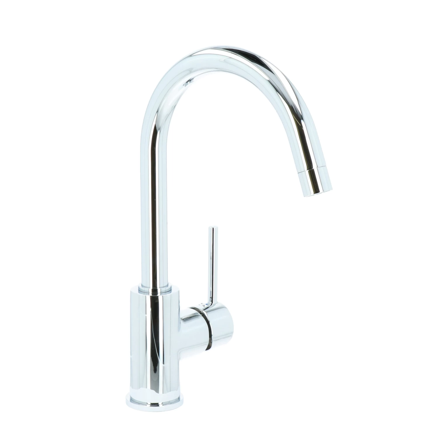 De Atlantic Jeremy éénhendel keukenkraan Chroom heeft met de C-vormige uitloop een rond elegant ontwerp en past met de prachtig glanzende chromen afwerking in ieder keukeninterieur. De keukenkraan Jeremy is ook verkijgbaar met uittrekbare sproeikop. De decoratieve hoge uitloop van maar liefst 32,7 cm in combinatie met de 360° draaibaarheid van de kraan geeft veel ruimte in de gootsteen. Dat maakt vullen van een grote pan of emmer eenvoudig. De éénhendelbediening zorgt voor een eenvoudige menging van koud en warm water. De keramische schijven in de kraan zorgen daarbij voor een soepele en nauwkeurige draaiing, bovendien vergen deze schijven nauwelijks onderhoud. De kraan wordt het beste gereinigd met alleen water en een zachte doek. Kalk is makkelijk met de hand van de antikalkperlator af te vegen. Meer is niet nodig!