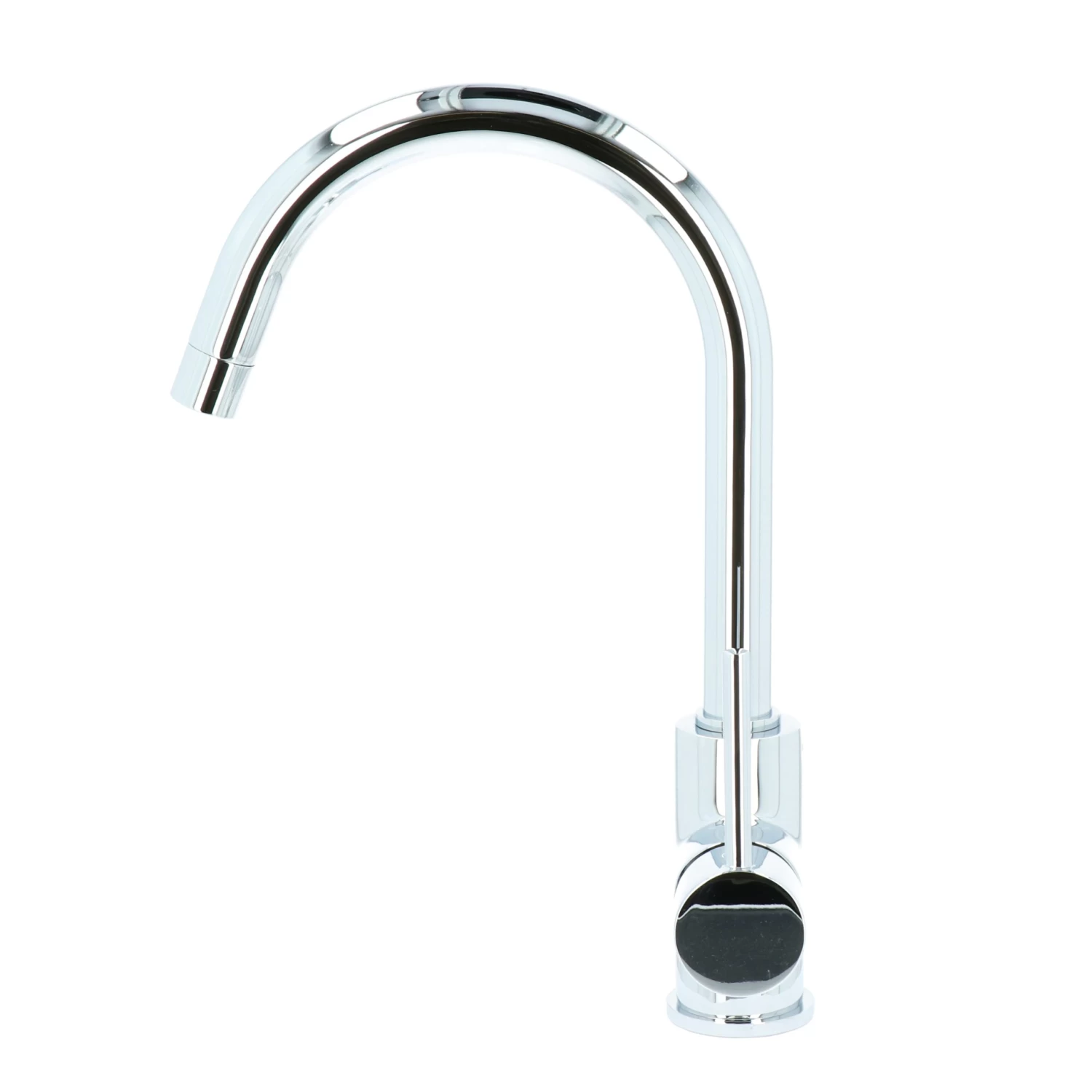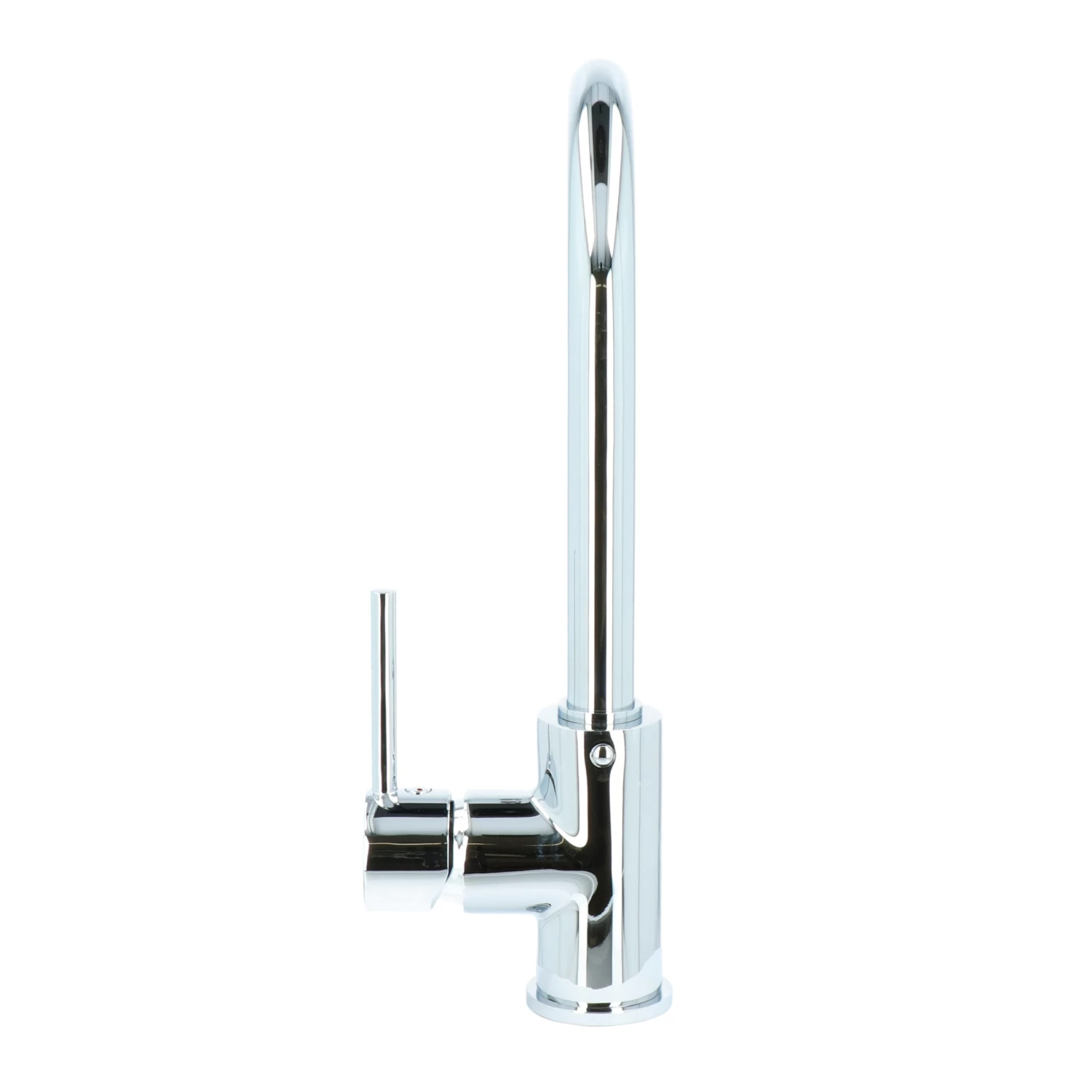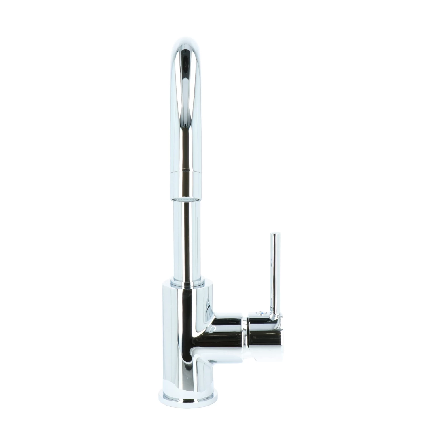 De Atlantic Jeremy éénhendel keukenkraan Chroom heeft met de C-vormige uitloop een rond elegant ontwerp en past met de prachtig glanzende chromen afwerking in ieder keukeninterieur. De keukenkraan Jeremy is ook verkijgbaar met uittrekbare sproeikop. De decoratieve hoge uitloop van maar liefst 32,7 cm in combinatie met de 360° draaibaarheid van de kraan geeft veel ruimte in de gootsteen. Dat maakt vullen van een grote pan of emmer eenvoudig. De éénhendelbediening zorgt voor een eenvoudige menging van koud en warm water. De keramische schijven in de kraan zorgen daarbij voor een soepele en nauwkeurige draaiing, bovendien vergen deze schijven nauwelijks onderhoud. De kraan wordt het beste gereinigd met alleen water en een zachte doek. Kalk is makkelijk met de hand van de antikalkperlator af te vegen. Meer is niet nodig!