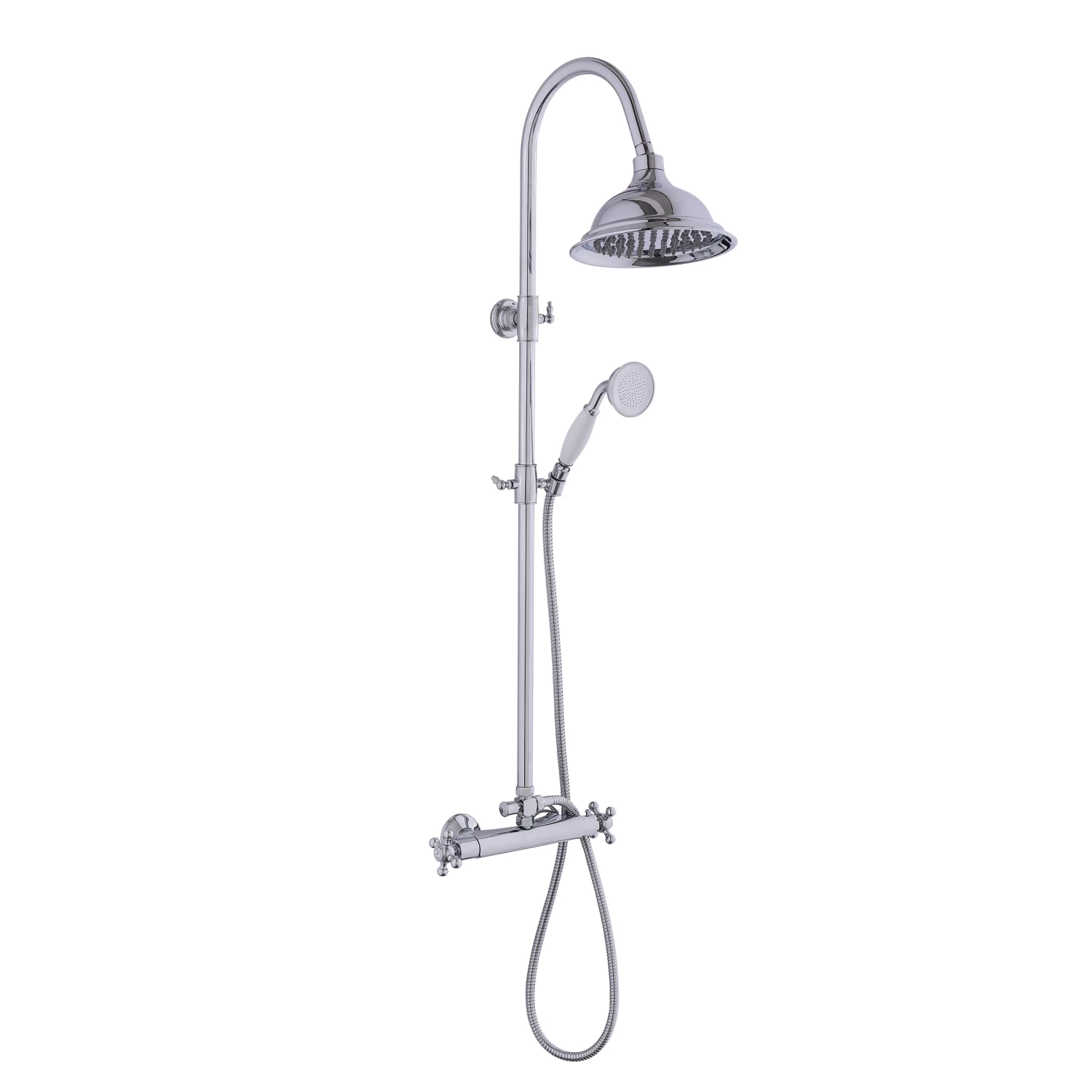 Het Atlantic Brunswick regendouchesysteem heeft een in hoogte verstelbare handdouche, een vaste en een brede regendouche van 208mm. De vaste regendouche heeft een klassiek design.