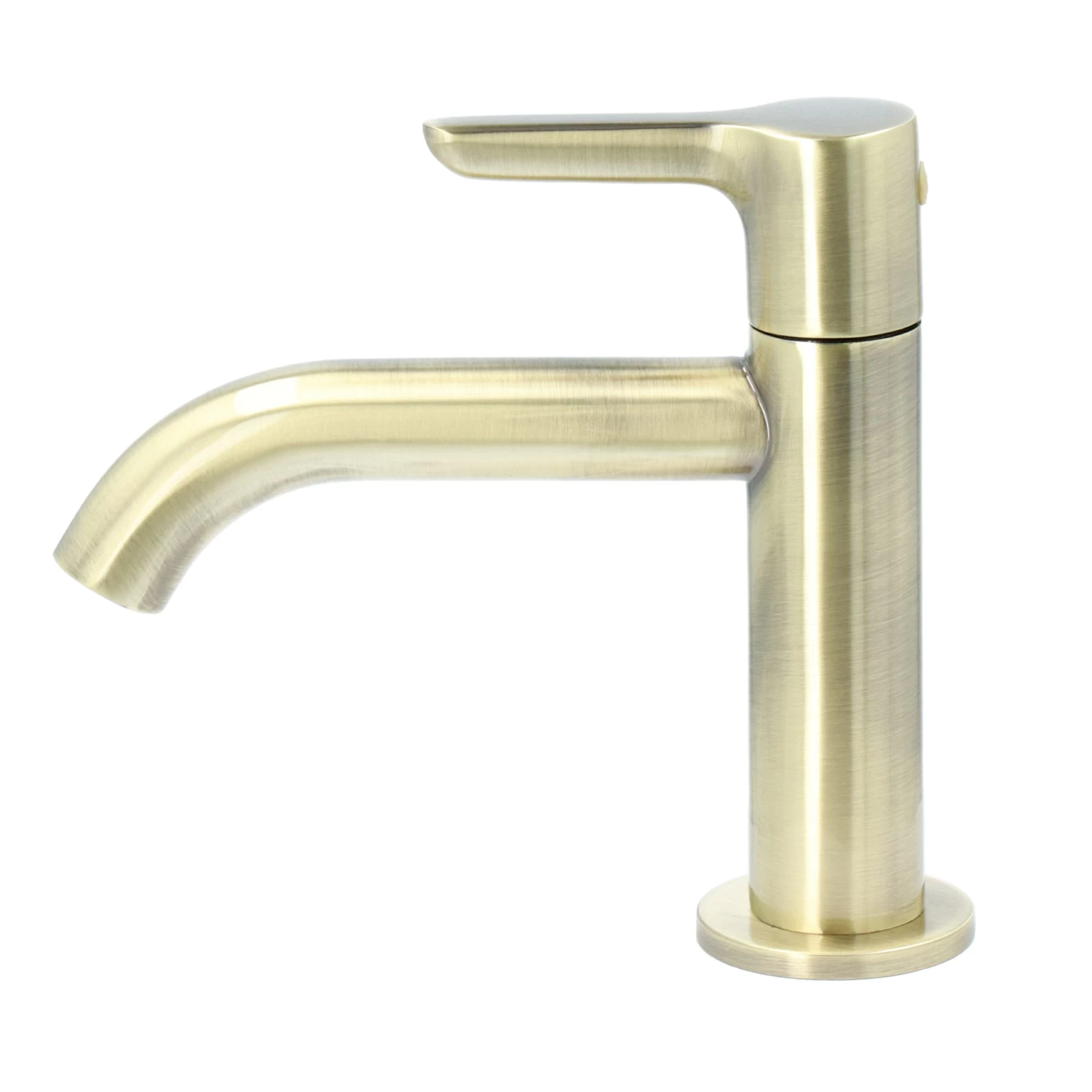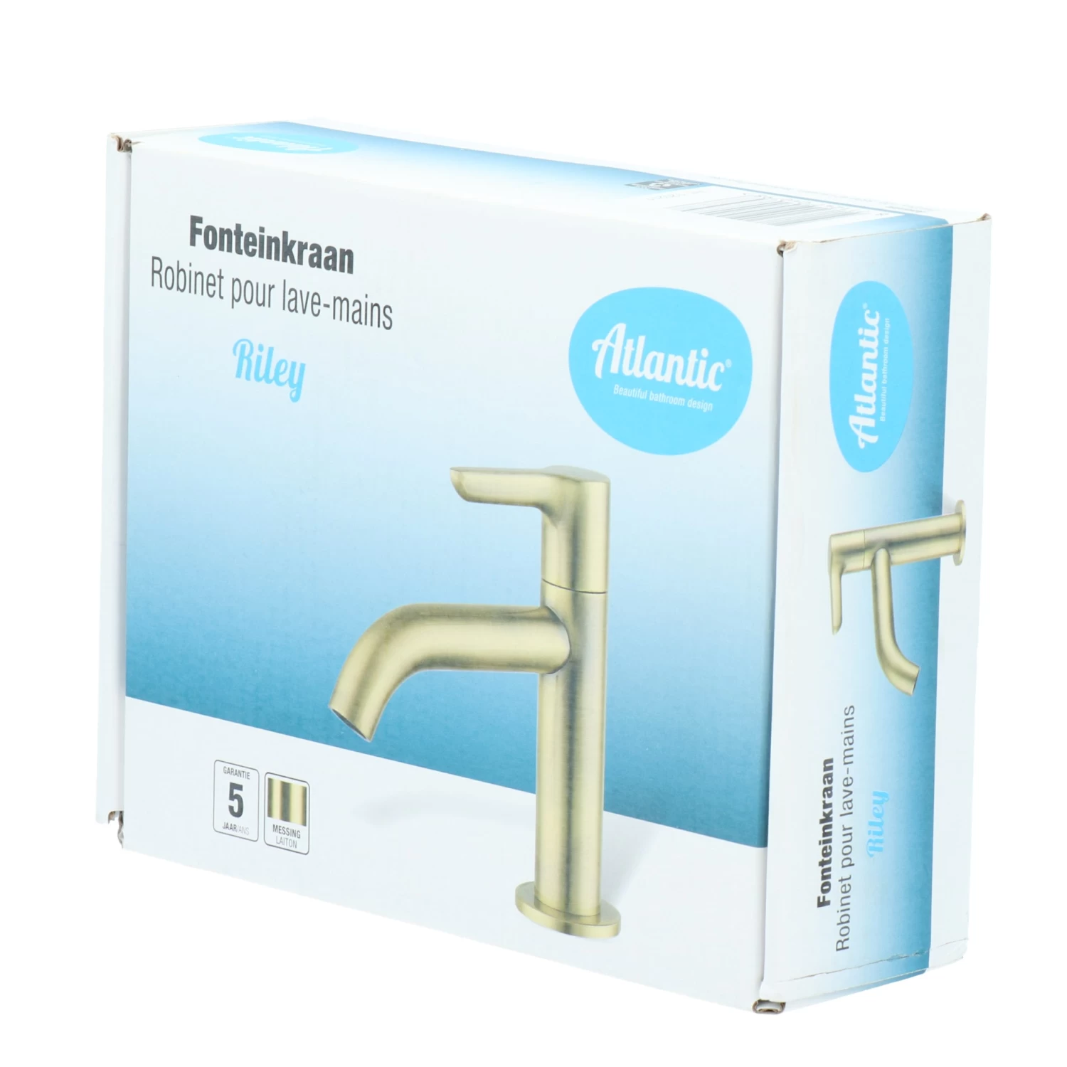 De Atlantic Riley éénhendel fonteinkraan Messing heeft met de rechte uitloop een tijdloos ontwerp en kenmerkt zich met een luxe uitstraling door de geborstelde goudkleurige messing afwerking. Ook verkrijgbaar zijn uitvoeringen in chroom, zwart en RVS, zo is er voor elk toiletinterieur een passende kraan te vinden. De éénhendelbediening maakt het aanzetten van de kraan kinderlijk eenvoudig.