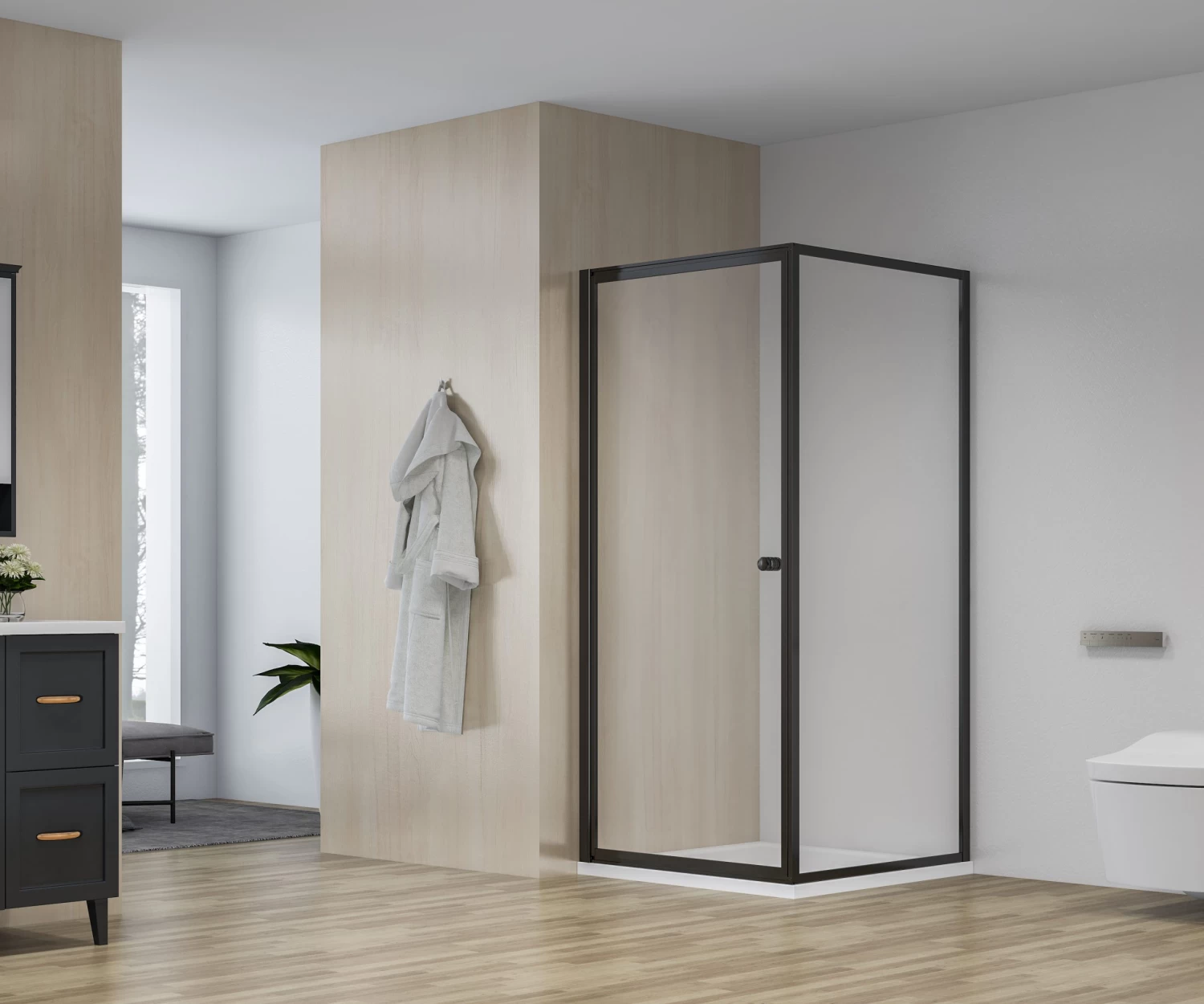 De douchecabine is exclusief douchebak.