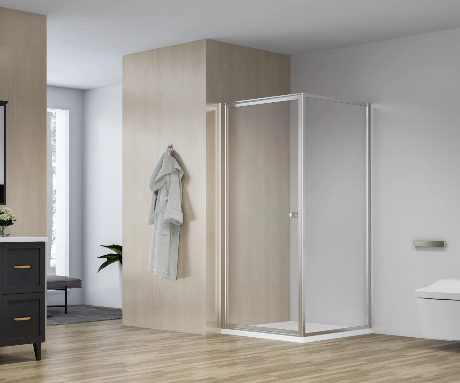 De douchecabine is exclusief douchebak.