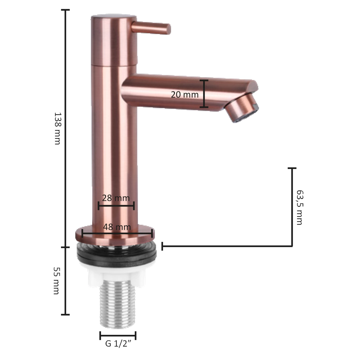 Breng je handenwasserset in je toiletruimte in één stijl met de fonteinkranen van Differnz! Deze prachtig vormgegeven fonteinkraan geeft koudwater en monteer je eenvoudig. Vanwege zijn mooie vormgeving en rood koperen afwerking combineer je de Differnz fonteinkraan recht rood koper goed met een vrijhangende wastafel of handenwasser.