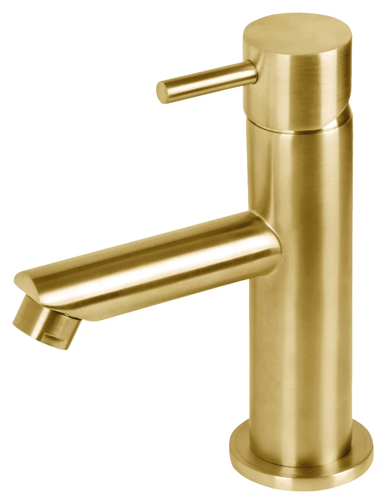 De Differnz wastafelkraan met hendel Goud bestaat uit een mengkraan van 13.5 cm hoog en 10.8 cm diep met flexibele aansluitslangen en bevestigingsmateriaal. Met de eenhendelbediening draai je met 1 hand de kraan naar de gewenste temperatuur.