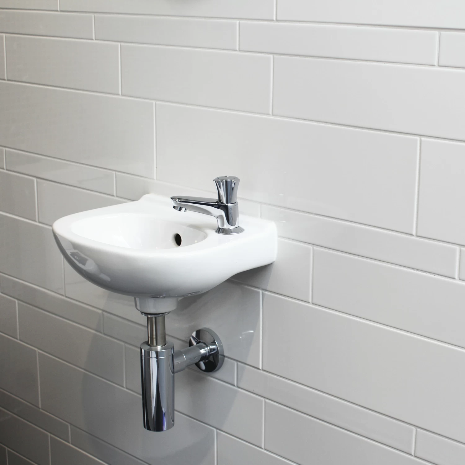 Strak wit wanddecor. De tegel is goed te combineren en te gebruiken in een strakke design badkamer, toilet of keuken.