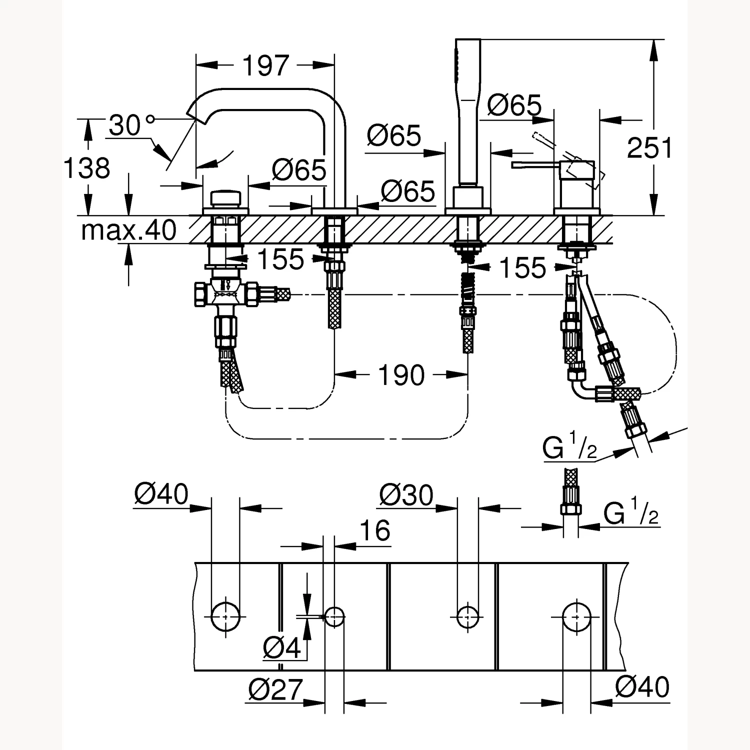 Na deze set te hebben gemonteerd in je badrand ben je voorzien van alles wat je nodig hebt. Het monteren doe je in combinatie met het Grohe Colours Badrandcombinatie 4- en 5-delig Inbouwdeel. Zodra je daar klaar mee bent zit jouw badrand vol met Grohe technologie, zoals de Grohe Colours Handdouche Essence New Koper. De kraan is voorzien van Grohe EcoJoy die het waterverbruik beperkt tot 9,5 L per minuut. Dat maakt deze combinatie de beste vriend van je portemonnee. De Inner WaterGuide technologie voorkomt een te hete kraan. Deze set sluit perfect aan bij de overige artikelen binnen de Grohe Essence New serie. Mocht koper (Warm Sunset) niet helemaal jouw kleur zijn of simpelweg totaal niet binnen de huidige badkamerstijl passen. Geen probleem! Je kunt deze 4-delige set ook in RVS (SuperSteel) in de KARWEi webshop kopen.