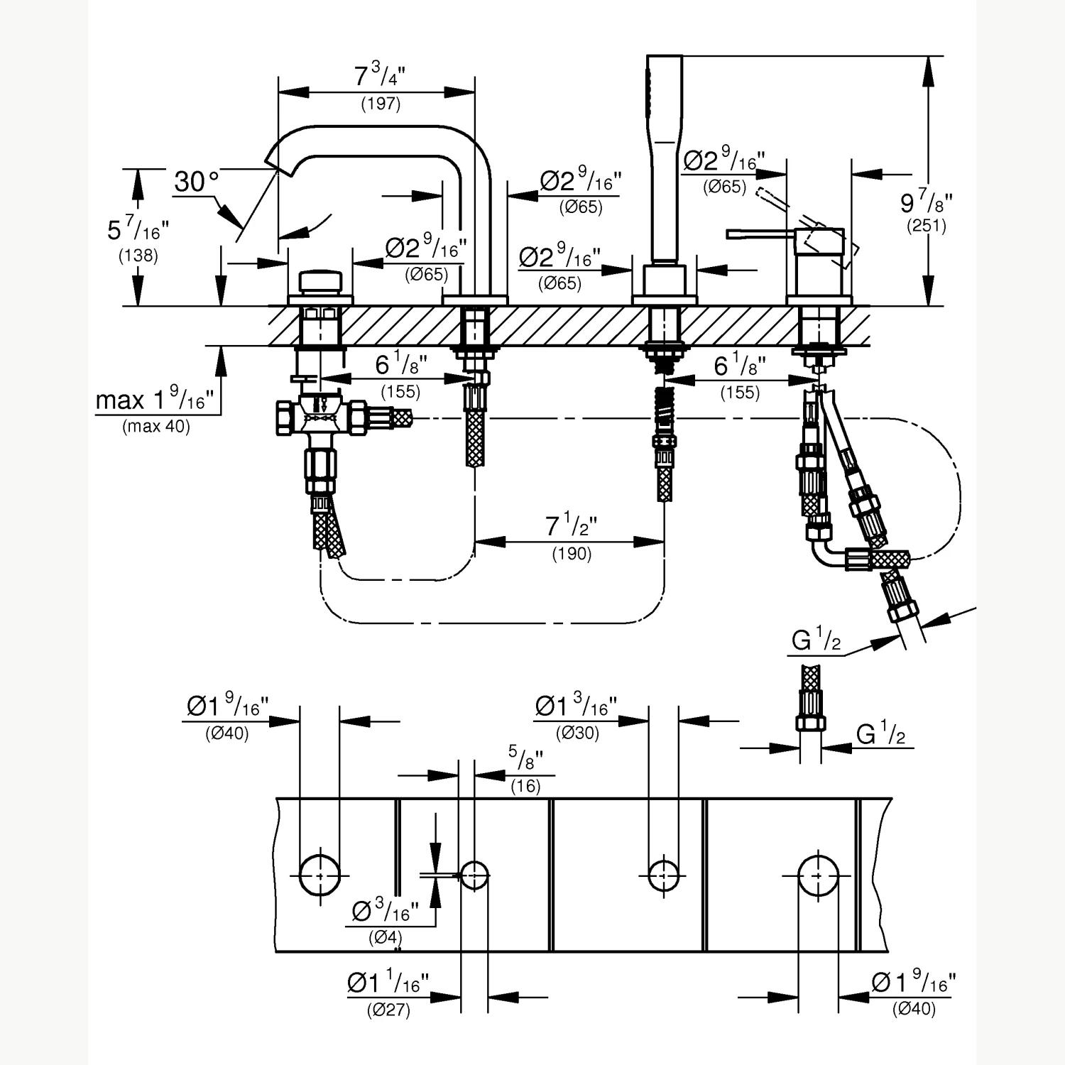 Voor gebruik van deze badrandcombinatie is het inbouwdeel (630516) noodzakelijk.