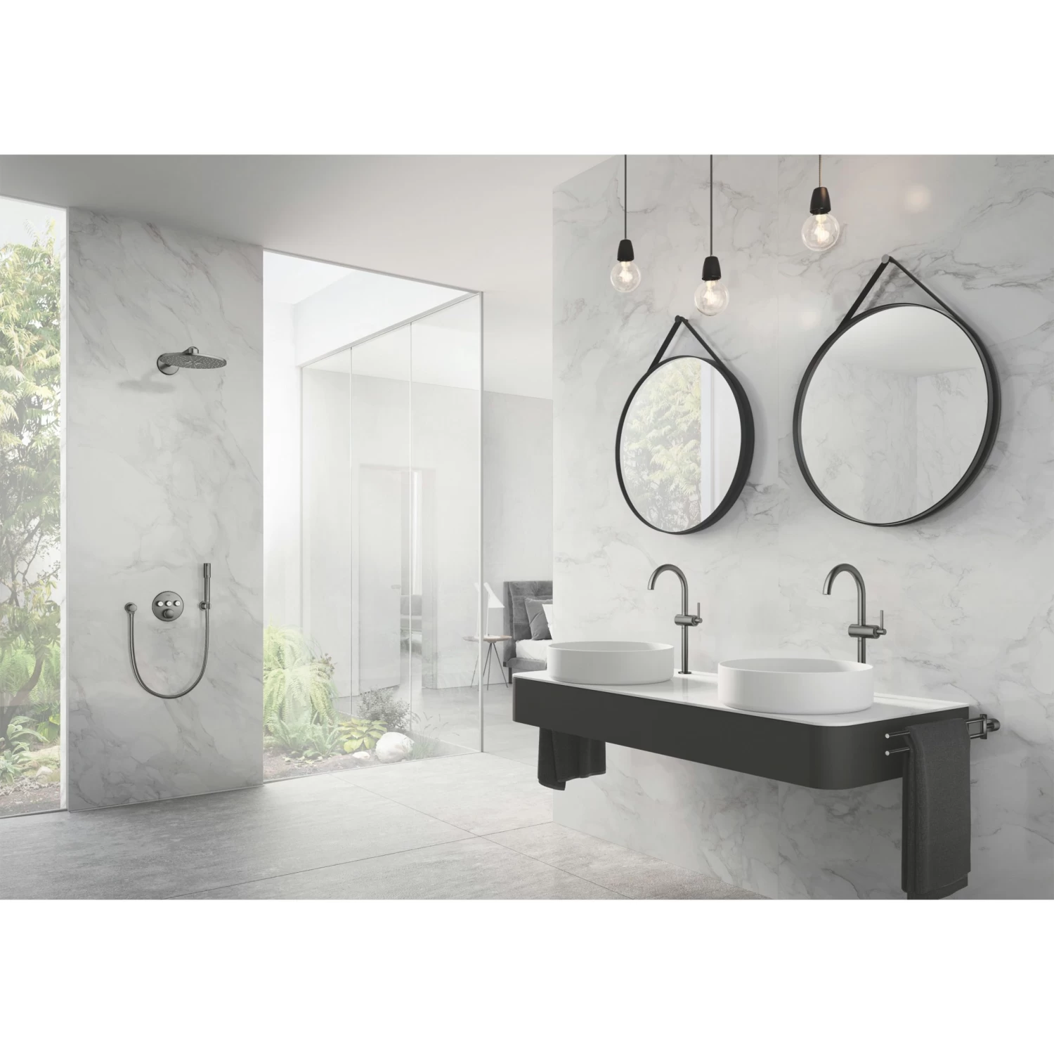 Je hebt een handdouche, maar natuurlijk geen zin om die constant vast te houden of aan de doucheslang te laten bungelen. Daar komt de Grohe Colours Handdouchehouder Essence New Grafiet perfect van pas. Nadat je deze eenvoudig aan de wand hebt bevestigd kun je je handdouche altijd netjes opbergen. Daarnaast is de steun ook nog eens zeer stijlvol. De Grohe StarLight coating zorgt ervoor dat de houder zeer krasbestendig en eenvoudig schoon te maken is. Daarnaast is het zeer geschikt om te combineren met de Grohe Colours Handdouche Essence New Grafiet en de Grohe Colours Doucheslang Essence New Grafiet Kunststof. Zij behoren namelijk tot dezelfde serie of vallen binnen dezelfde kleursoort. Mocht grafiet (Hard Graphite) toch niet helemaal jouw kleur zijn dan kun je deze handdouchehouder voor aan de wand ook in RVS (SuperSteel) of koper (Warm Sunset) in de KARWEI webshop kopen.