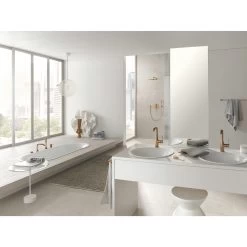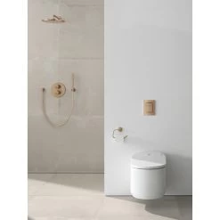 Ook altijd zo’n hekel aan douchen onder een veel te kleine douchekop? Nooit volledig onder de straal kunnen staan en het dus altijd wel ergens koud hebben. Dat is voorbij, want deze Grohe Colours Regendouchekop Essence New Inbouw Wand Koper Ø31 cm heeft een diameter van maar liefst 31 cm. De douchekop heeft een douchearm van 14,2 cm aan de bovenzijde. Het is dus de bedoeling om deze douchekop aan de wand te monteren. Daarnaast zit deze regendouche boordevol Duitse technologie. De Grohe DreamSpray zorgt ervoor dat het water gelijk verdeeld wordt over ieder sproeigaatje. De PuraRain Spray biedt grote, maar zachte druppels. In combinatie met een aangename temperatuur voelt dit als een zomerse regenbui. Met de Grohe EcoJoy verminder je het waterverbruik. Daardoor is dit ook een goede keuze voor de portemonnee! De siliconen SpeedClean sproeigaatjes zijn enorm eenvoudig te reinigen. Daardoor zul je veel minder last hebben van kalkaanslag en gaat de douchekop langer mee. Daarnaast heeft de regendouchekop een Grohe StarLight buitenlaag waardoor de kop krasbestendig is en, net als de sproeigaten, gemakkelijk schoon te maken zijn. Tot slot heeft de douchekop een Inner WaterGuide die ervoor zorgt dat de buitenkant van de douche niet te warm wordt van het water dat er doorheen stroomt. Dat waren de technische aspecten van de regendouche, maar het oog wil ook wat. Dat is waarom je in de KARWEI webshop de keuze hebt uit de kleuren grafiet (Hard Graphite), koper (Warm Sunset) en RVS (SuperSteel) met daar bovenop nog de keuze tussen de plafond- en wandmontage variant.