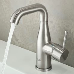 Net als alle Grohe producten zit ook deze Grohe Colours Wastafelkraan Essence New M RVS met Waste boordevol met Duitse technologie. Met de Grohe SilkMove keramische schijven heb je een precieze controle over de waterstroom. De Grohe EcoJoy functie zorgt ervoor dat de kraan zeer zuinig met water omgaat. Het waterverbruik is dan ongeveer 5,7 L per minuut. Het draaibereik van de kraan is zelf in te stellen. Zo kun je hem instellen op 0°, 150° of 360° graden. Het QuickFix Plussysteem maakt deze wastafelkraan eenvoudig te installeren en halveert zelfs de tijd die je ervoor nodig hebt. De kraan is perfect te combineren met overige artikelen uit de Grohe Essence New serie. Mocht RVS (SuperSteel) niet jouw favoriete kleur zijn of past het simpelweg totaal niet binnen je huidig badkamerstijl. Geen probleem! Je kunt deze wastafelkraan ook in grafiet (Hard Graphite) of koper (Warm Sunset) in de KARWEI webshop kopen. Daarnaast is deze kraan ook in andere maten verkrijgbaar.