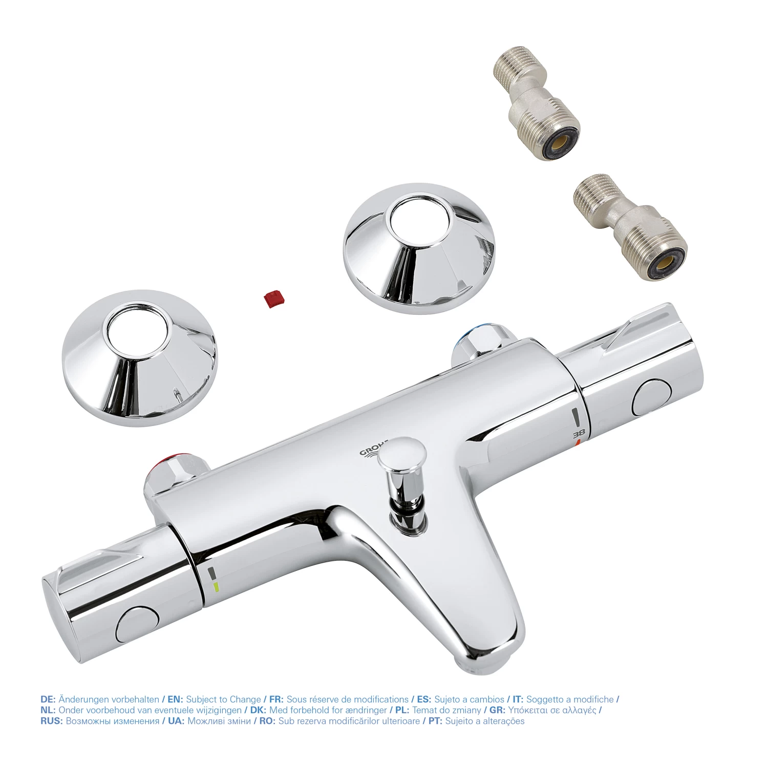 Met deze badkraan hoef je nooit meer elke keer de watertemperatuur te regelen. De GROHE TurboStat® technologie zorgt ervoor dat het water altijd op de door jou ingestelde temperatuur is. Die stel je overigens heel eenvoudig en precies in met behulp van de duidelijke aanduiding van GROHE EasyLogic. Zeep aan je handen? Dan nog is het regelen eenvoudig dankzij de vleugelvormige grepen. De kraan is ook voorzien van SafeStop, zodat het water nooit zomaar te heet kan worden. Daarmee is ook een kinderhuidje goed beschermd tegen te heet water. GROHE EcoJoy® is de waterbesparingsfunctie waarmee je tot wel 50% op je verbruik bespaart. De kraan is uitgevoerd met de glanzend chromen GROHE StarLight® beschermlaag die bovendien bijzonder onderhoudsvriendelijk is.