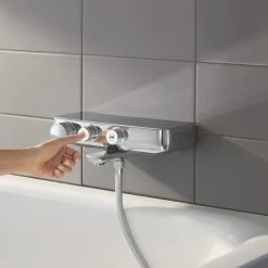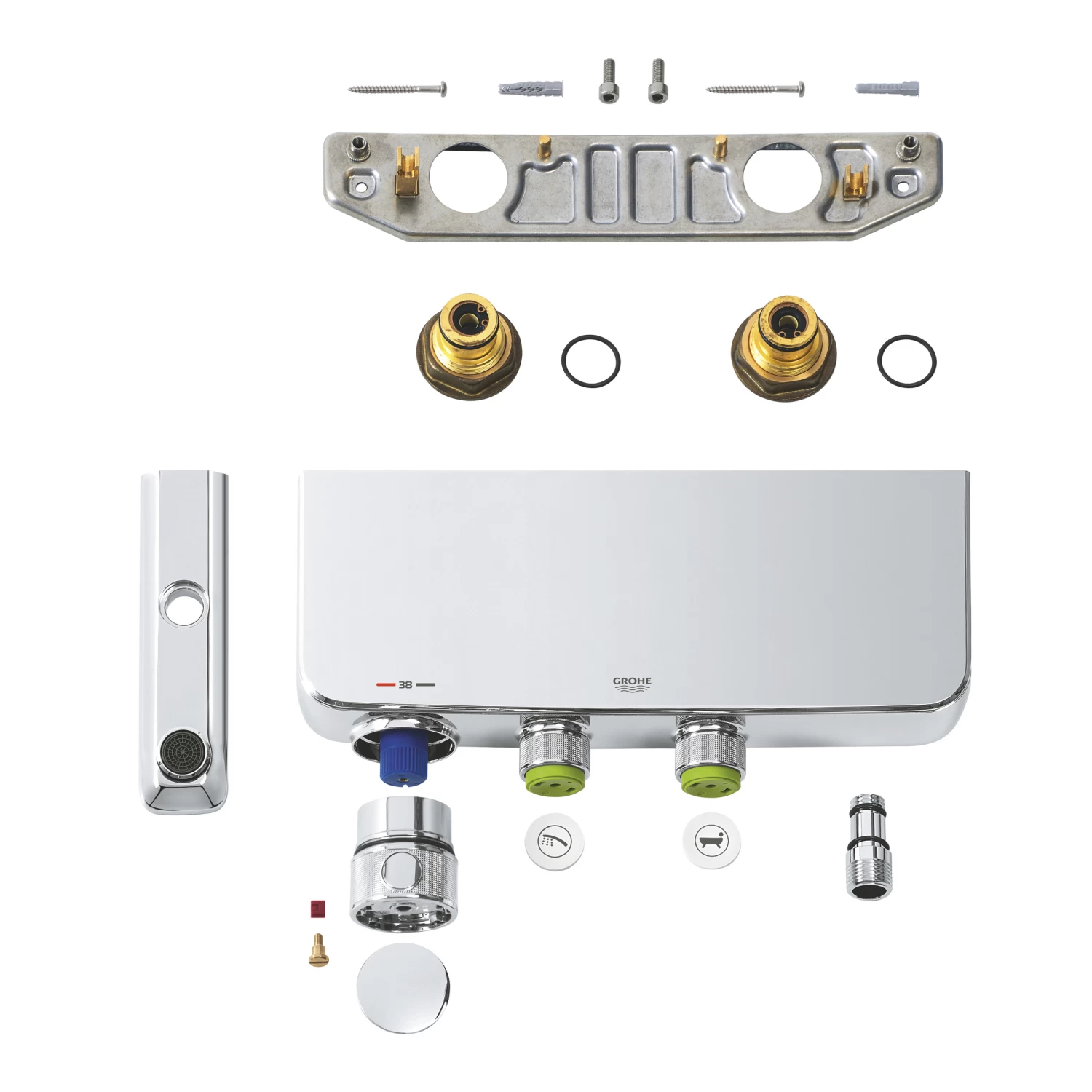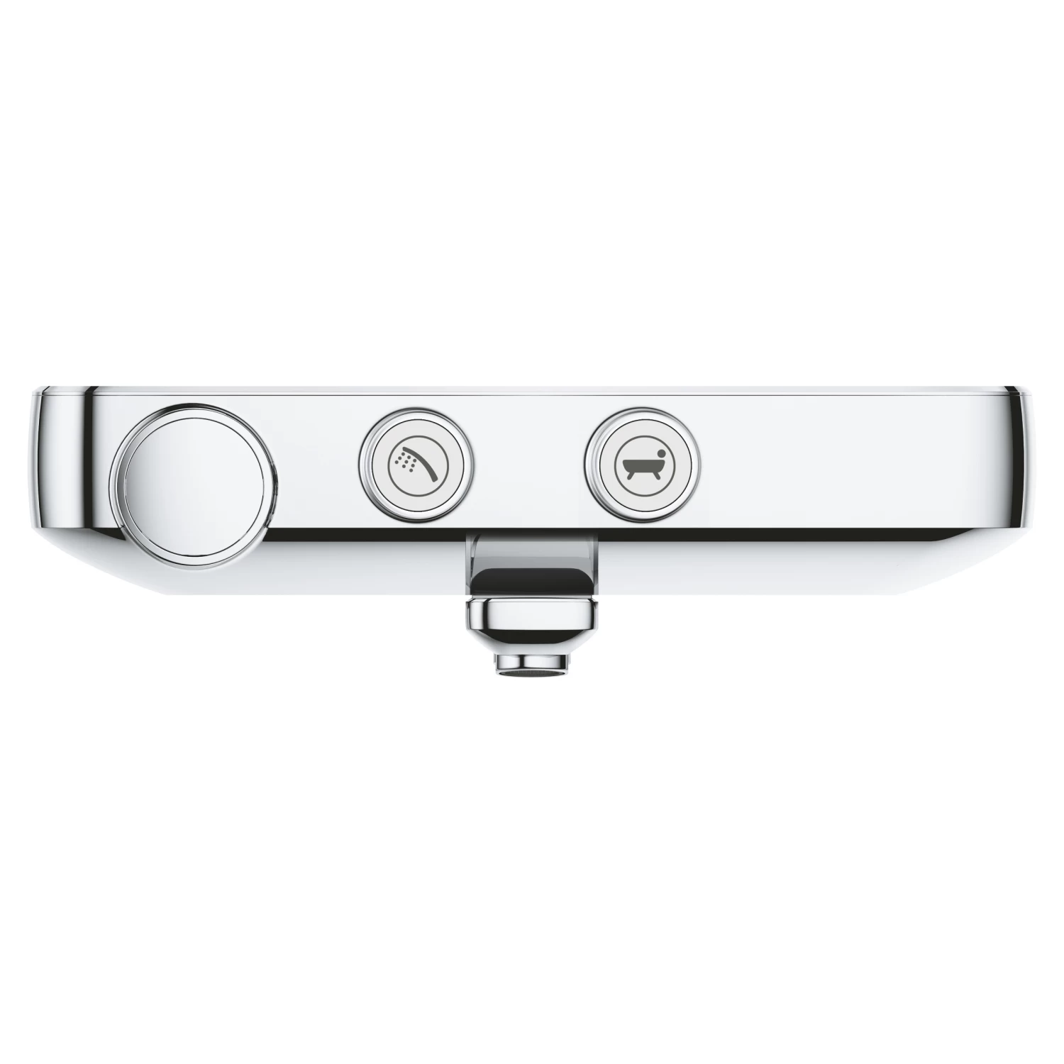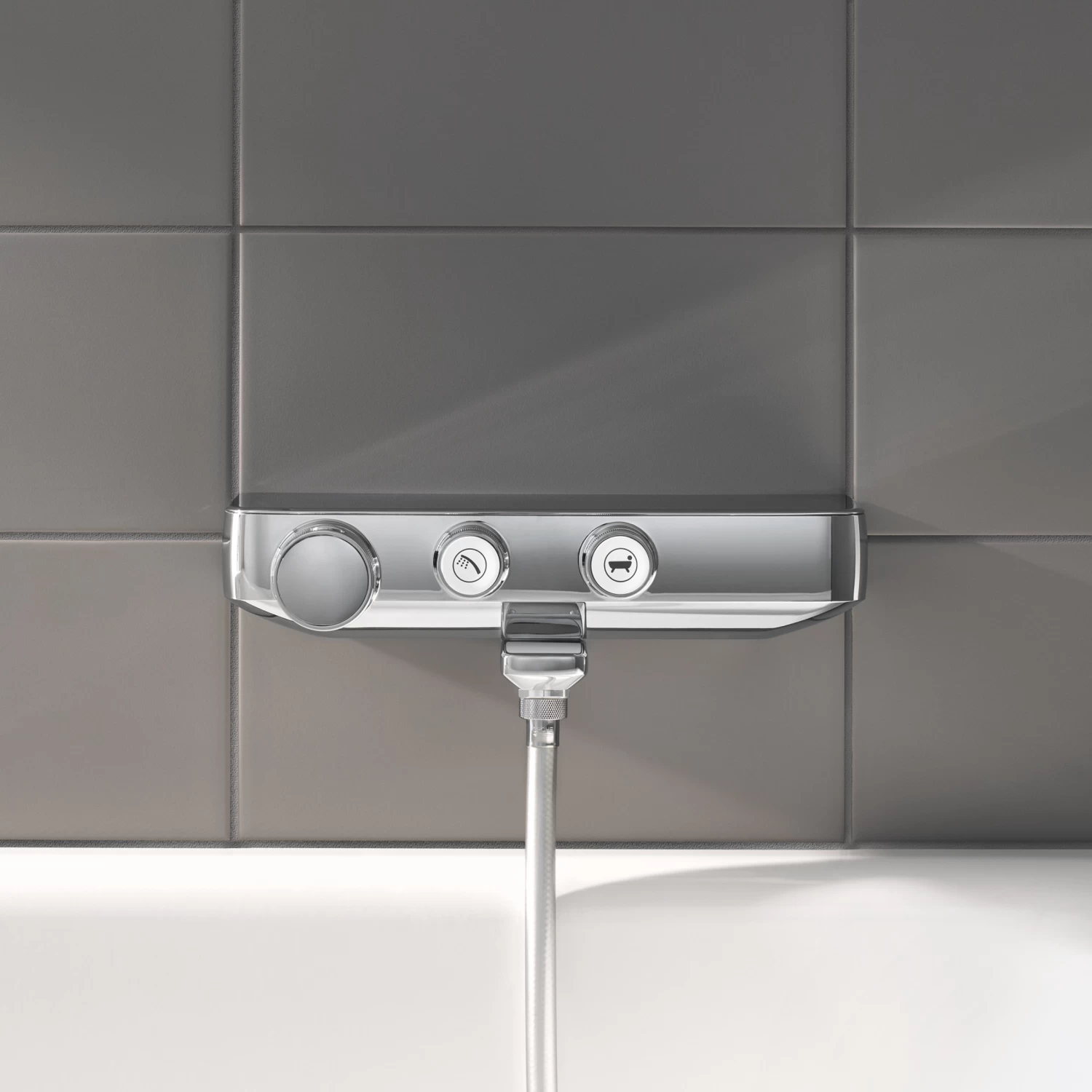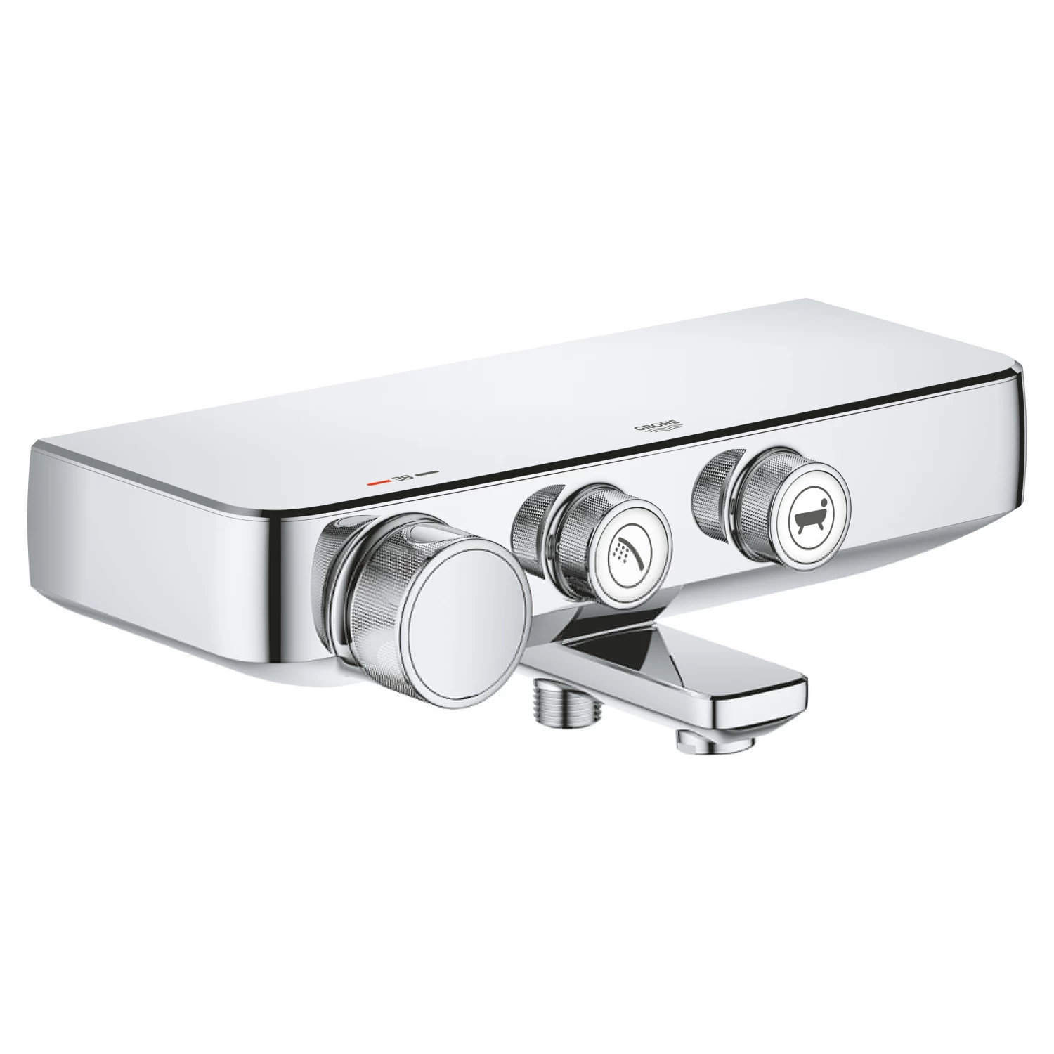 De GROHE Grohtherm SmartControl thermostatische badkraan Chroom blijft met de strakke lijnen van het blok-design en de glanzend chromen StarLight afwerking niet alleen een jarenlang schitterende aanwinst in de badkamer, ook biedt het veel functionaliteit en besparing!