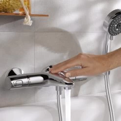 Het Grohe Turbostat element zorgt niet alleen voor extra comfort. Door het sneller bereiken van de gewenste temperatuur wordt er minder water verspilt. Met de waterbesparingsknop wordt de toevoer van water handmatig begrenst. Als je de watertoevoer wilt vergroten druk je eenvoudig de knop in en draait de kraan verder open.