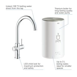 Altijd kokend heet water bij de hand met één druk op de knop. Het kan met de Grohe Red Compact. Het is een stijlvolle keukenkraan met een eigen compacte M-size boiler. Het kokende water is perfect voor het maken van thee en koffie, maar ook voor het vullen van pannen en het bereiden van maaltijden.