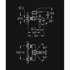 Met de meegeleverde S-aansluitingen, afdekrozetten, bevestigingsmateriaal en installatiehandleiding is de douchemengkraan met hartafstand 15 cm op elke universele wateraansluiting te monteren. Ook de douche-uitloop heeft een universele maat van ½”. Op de douchekraan krijg je 5 jaar garantie. In dit model is ook een douchekraan verkrijgbaar.