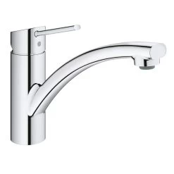 Een keukenmengkraan met een tijdloos en eenvoudig ontwerp, dat is de GROHE keukenkraan Swift met hendel Chroom. De kraanset bestaat uit een lage chromen keukenkraan met hoogte van 22,6 cm en uitloophoogte van 14,4 cm, flexibele aansluitslangen, montagehandleiding en een snelmontagesysteem. Deze mooie GROHE StarLight® chromen keukenkraan heeft een handige eenhendelbediening, waarmee je eenvoudig met 1 hand de kraan naar de gewenste temperatuur draait. Met de GROHE SilkMove® technologie doe je dat extra gemakkelijk: de grote instelhoek en unieke keramische schijven zorgen ervoor dat je de kraan comfortabel en nauwkeurig kan bedienen. De uitloop van de kraan draai je eenvoudig tot 140°, zodat je snel ruimte maakt in je gootsteen. De doorstroomsnelheid van het water kun je beperken door de begrenzer bij montage in te stellen. Zo bespaar je op je waterverbruik. Monteren doe je eenvoudig zelf met het meegeleverde materiaal en het snelmontagesysteem GROHE QuickFix®, waarbij je slechts 1 montagegat nodig hebt. Met de handleiding is dat zo gebeurd! De kraan heeft het Belgaqua keurmerk en bij aankoop krijg je 5 jaar fabrieksgarantie.