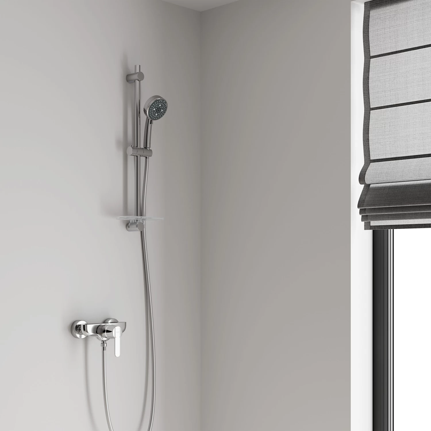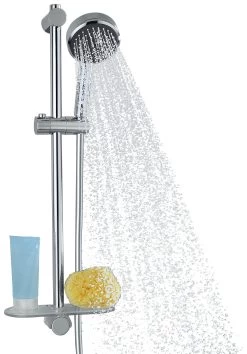 De GROHE Vitalio Comfort New 100 doucheset bestaat uit een Vitalio Comfort 100 handdouche met 4 standen, de Vitalio Comfort glijstang 60 centimeter met luxe zeepschaal en Vitalio Flex Comfort doucheslang 175 centimeter. De glijstang kan eenvoudig worden geplaatst op bestaande boorgaten. De GROHE Vitalio Comfort 100 handdouche met 4 standen heeft een diameter van 10 centimeter en is voorzien van vier straalsoorten. Bij de GROHE Rain O² geven fijne regenstraaltjes het effect van een zomerse regenbui op je lichaam. De GROHE Jet straal is een volle, krachtige straal die de huid tot in de puntjes stimuleert. Bij de GROHE Massage straal zorgen pulserende waterstoten voor een aangenaam tintelende ervaring. De GROHE Champagne straal is zacht, parelend en bruisend, met miljoenen kleine luchtbelletjes in het water. Daarnaast zorgt GROHE DreamSpray® technologie voor een perfecte verdeling van het water. De handdouche is waterbesparend met een waterverbruik van maximaal 9,4 liter per minuut. GROHE TwistFree voorkomt het meedraaien van de doucheslang waardoor deze niet kan knikken.