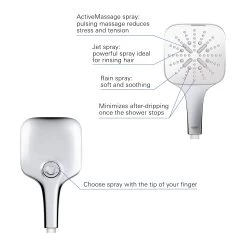 - Handdouche met 3 straalsoorten: Rain, Jet en ActiveMassage