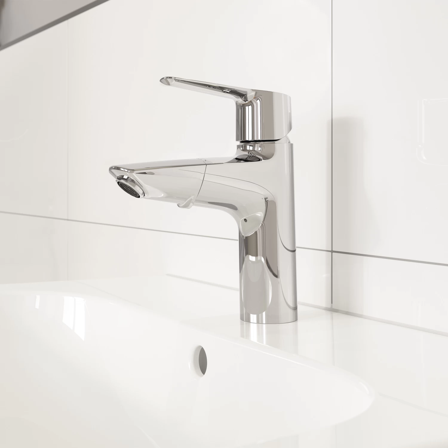 Met de waterbesparende GROHE Start wastafelkraan maak je jouw moderne badkamer helemaal up-to-date. Deze vernieuwde eengreeps wastafelkraan met handige pop-up waste is ontworpen voor een 1-gatsinstallatie en heeft een hogere uitloop, die tevens uittrekbaar is voor extra gebruiksgemak. Het wassen van je haren gaat voortaan moeiteloos onder de kraan en ook de wastafel maak je met de mousseur tot in de puntjes eenvoudig hygiënisch schoon. Na gebruik gaat de uittrekbare mousseur vanzelf weer terug op zijn plaats dankzij het GROHE Magnetic Docking systeem. Superhandig! Binnenin de kraan zorgt de GROHE SilkMove cartouche voor een soepele bediening van de solide metalen hendel, zodat je zonder haperen het watervolume en de temperatuur kunt regelen. Deze innovatieve wastafelmengkraan is bovendien uitgerust met een geïntegreerde temperatuurbegrenzer, waarmee je verbranding door heet water voorkomt én aanzienlijk op je energierekening bespaart. Ook verbruik je veel minder water dankzij de waterbesparende GROHE EcoJoy functie, terwijl je geniet van een comfortabele waterstraal. Via de GROHE Zero gescheiden waterwegen wordt voorkomen dat het water in de kraan in contact komt met lood en nikkel, zodat de wastafelkraan elke dag zuiver en fris drinkwater levert. De vernieuwde GROHE Start wastafelkraan verhoogt het comfort in je badkamer op elk gebied. Ook qua schoonmaakgemak, want dankzij de duurzame en onderhoudsvriendelijke GROHE StarLight chroomafwerking ziet de kraan er zelfs na veelvuldig gebruik onberispelijk uit!