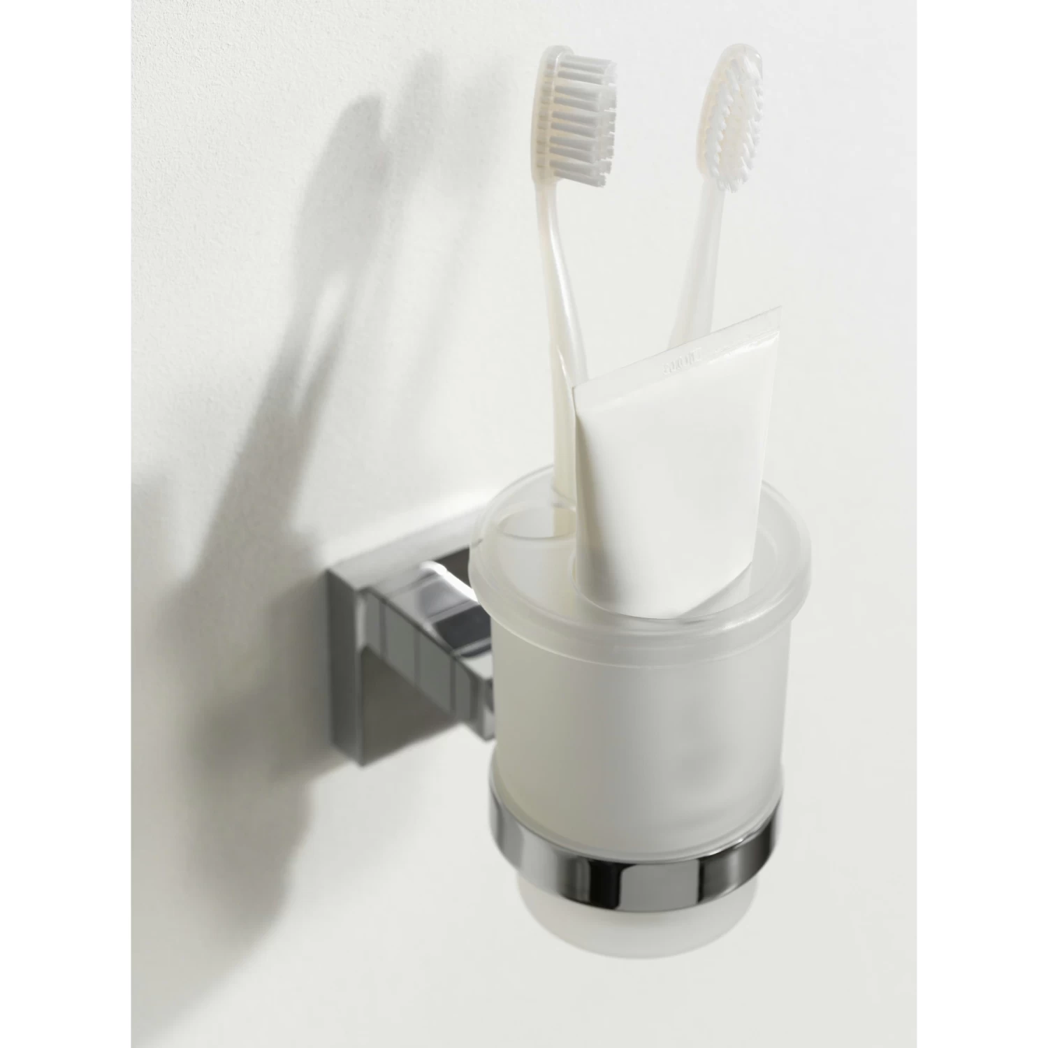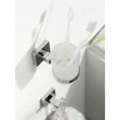 De Haceka Mezzo bekerhouder chroom is een exclusieve beker van melk, mat glas zit altijd stevig in de houder: dankzij de zwarte, rubberen ring klem je hem moeiteloos en geruisloos vast. Bovendien is de beker makkelijk uitneembaar. De beker is getest en voldoet aan de Europese normen voor artikelen die met voedsel in aanraking komen. Dit betekent dat de beker geen gevaarlijke stoffen afgeeft en dat je er gegarandeerd veilig uit kunt drinken. Vind je de Mezzo serie ook zo mooi, combineer dan alle producten van Mezzo. De Mezzo lijn bestaat uit een collectie kranen, douchesets en alle mogelijke accessoires.