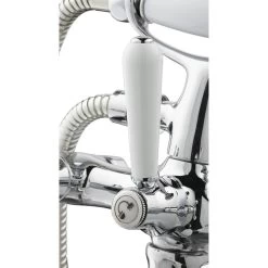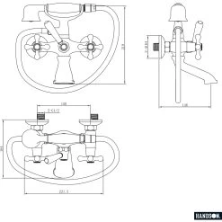 De Handson Louise tweeknops badkraan heeft een sfeervolle en klassieke vormgeving. De badkraan is compleet met bijpassende handdouche en doucheslang. De kraan is tevens voorzien van keramische schijven die zorgen voor een soepele en nauwkeurige bediening van de knoppen. In tegenstelling tot kranen met kraanleertjes, vergen keramische schijven nauwelijks onderhoud. Met de omstelknop aan de bovenzijde van de kraan kan je watertoevoer regelen voor je baduitloop of je douche uitloop.
