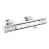 De thermostaatknop van de kraan is uitgerust met een temperatuurbeveiligingsknop die de watertemperatuur begrengst. Ideaal wanneer je bijvoorbeeld jongere kinderen hebt. Wil je genieten van een extra warme douche, dan druk je deze knop in en draait de kraan verder open.