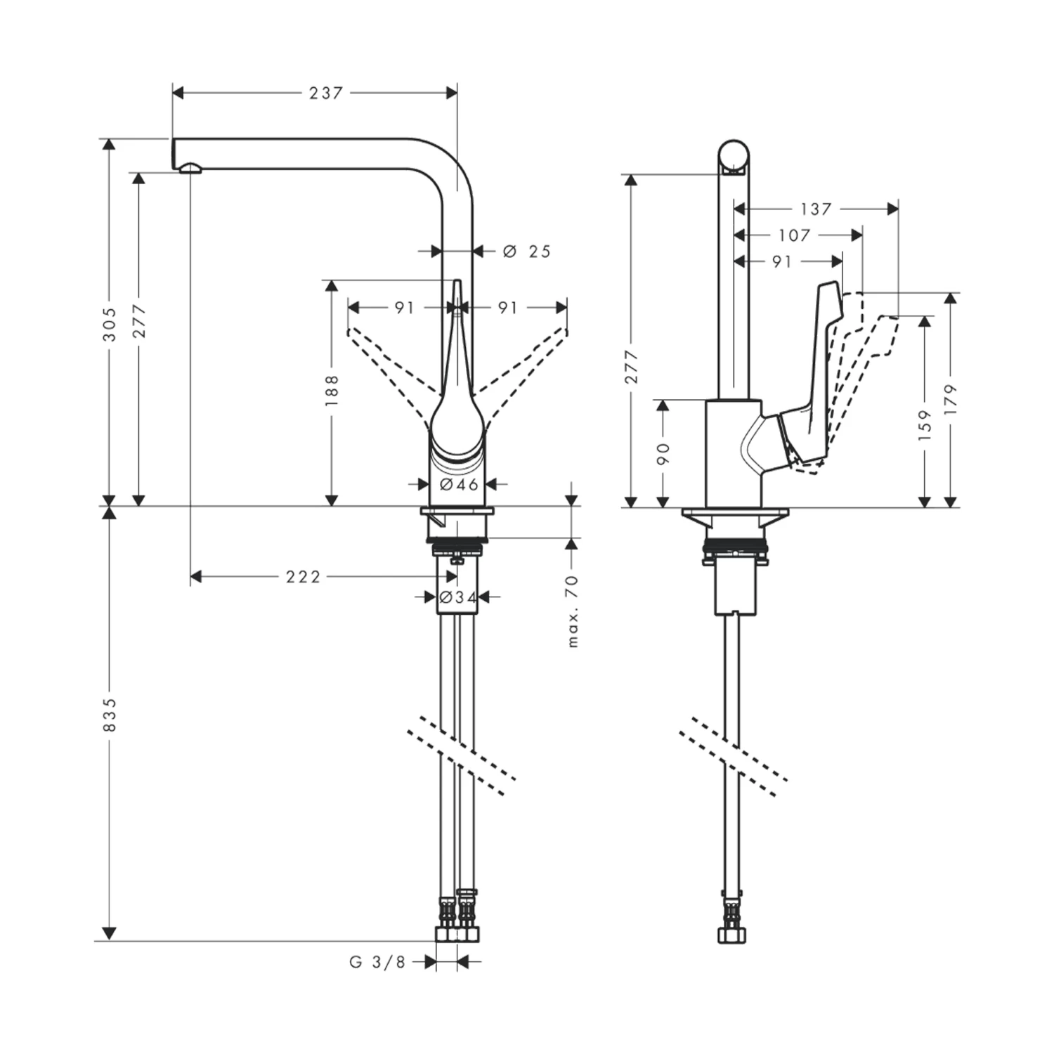 Haal design in huis met de hansgrohe Keukenkraan Cento L 1-greeps! Deze kraan van maar liefst 30,5 cm hoog is met de L-vormige uitloop en de hoogglans van de chromen afwerking een echte blikvanger voor iedere moderne keuken. De hoogte trekt niet alleen de aandacht, maar biedt bovendien ook veel ruimte in de gootsteen. En doordat de uitloop 150° weg te draaien is, biedt dat bovendien een hoop flexibiliteit in het ruimtegebruik op het aanrecht.
