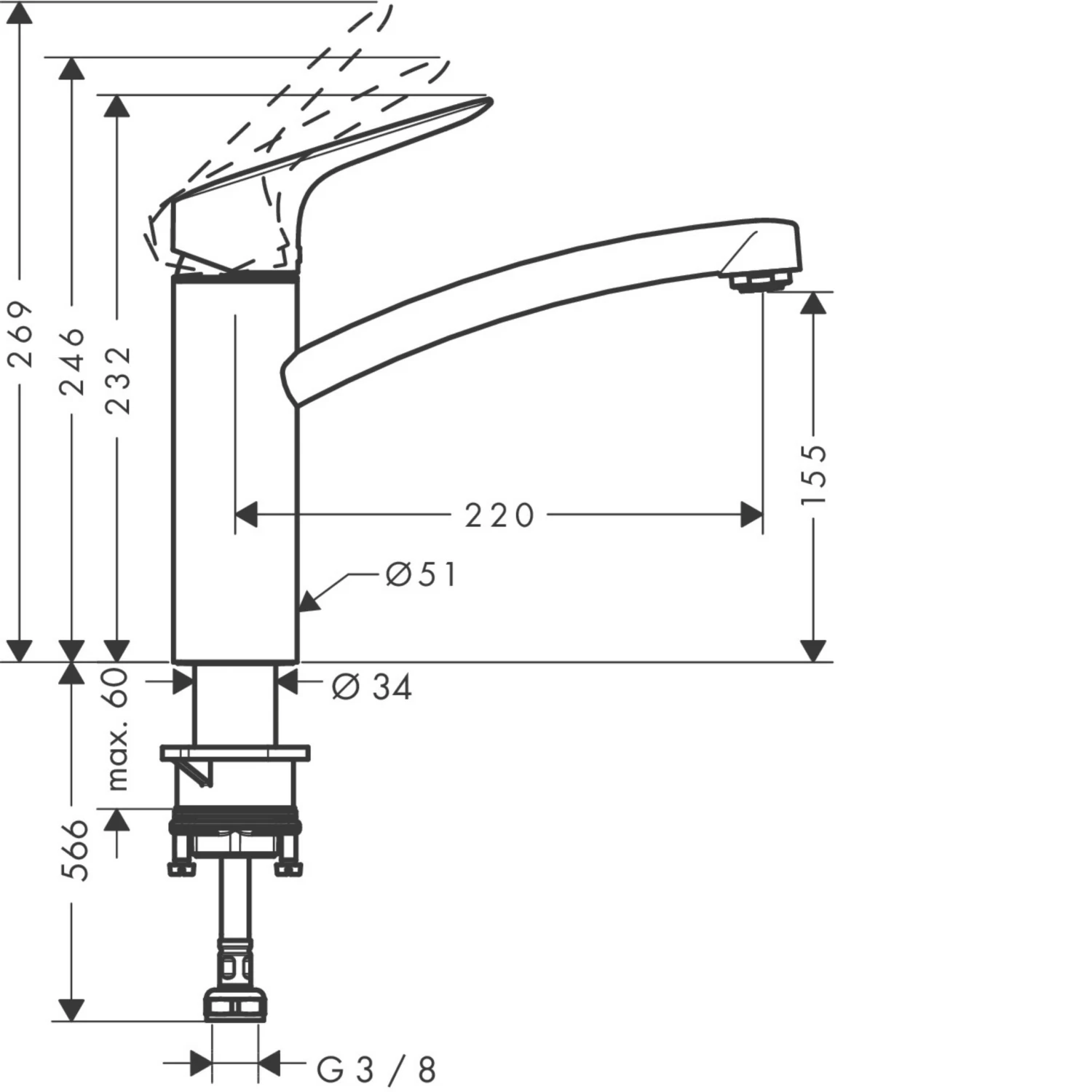 De Hansgrohe Keukenkraan MySport M met Hendel Chroom kenmerkt zich door het stijlvolle, strakke en moderne design en past daardoor perfect binnen de stijl van de meeste keukens. De kraan heeft een draaibereik van 360 graden; en biedt daardoor groter comfort en meer bewegingsvrijheid. Dit is bijvoorbeeld handig als je zowel aan de linker- als rechterzijde van de kraan bezig bent. Vind je een hogere kraan nog mooier of praktischer? Dan kan je ook kiezen voor de L variant met een ronde uitloop. De kraan is dankzij de flexibele aansluitslangen eenvoudig te monteren. Dankzij de waterbesparende EcoSmart functie bespaar je tot wel 60 procent water, omdat de kraan niet meer dan 12 liter water per minuut verbruikt. Ideaal als je vaak je handen wast in de keuken!