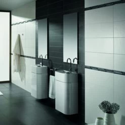 Mat witte wandtegel in bijzonder formaat. Combineer de wandtegel met een speels mozaïek en trendy vloertegel en geef je badkamer of of toilet een frisse nieuwe look.Ook in een glanzende versie verkrijgbaar.