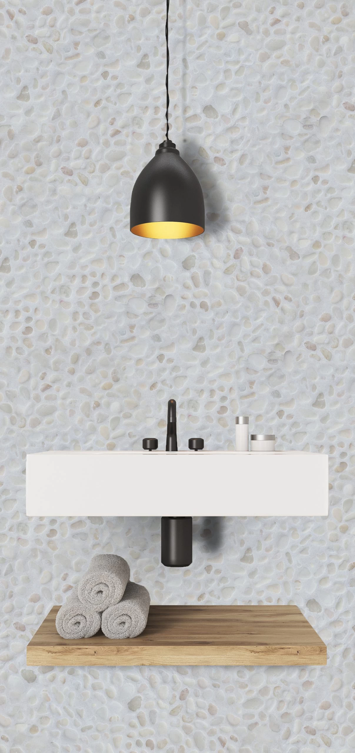 Bekleed je vloer of wand met Pebble kiezels en creรซer een natuurlijk effect in elke mogelijke ruimte in en om je woning. De kiezels zijn gemaakt van natuursteen en zijn voorzien van een gladde afwerking waardoor de Pebbles slijt- en krasvast zijn.