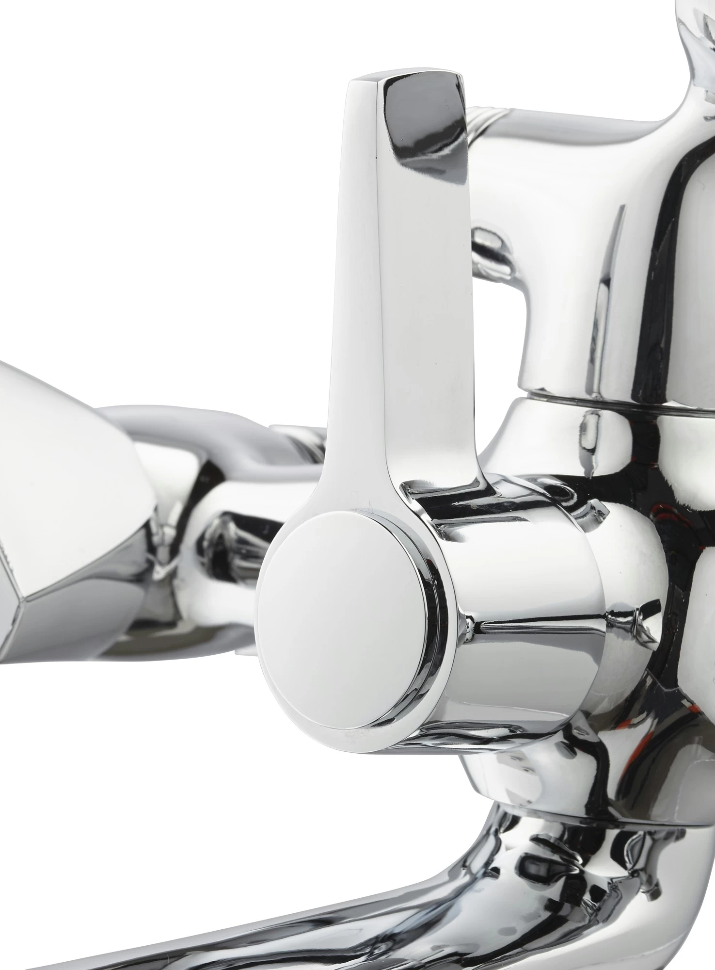 De OK 2-knops badkraan met omstelknop Chroom is een functionele kraan met een tijdloos ontwerp. Met zijn glanzend chromen afwerking past deze kraan in ieder badkamerinterieur. De kraan heeft een handdouchehouder en doucheuitloop waarop elke universele doucheslang bevestigd kan worden. De omstelknop zorgt voor een eenvoudige omschakeling tussen bad- of douchefunctie. De kraan is eenvoudig te reinigen met alleen water en een zachte doek.