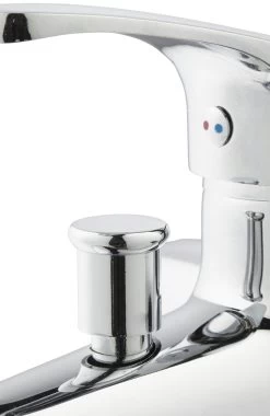 De OK éénhendel badkraan met omstelling is een kraan met een functionele insteek en is afgewerkt in het chroom. De kraan is voorzien van keramische schijven die zorgen voor een soepele en nauwkeurige bediening van de knoppen. In tegenstelling tot kranen met kraanleertjes, vergen keramische schijven nauwelijks onderhoud. Met de omstelknop aan de bovenzijde van de kraan kan je watertoevoer regelen voor je baduitloop of je douche uitloop.
