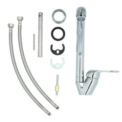 De kraan van 25,5 cm hoog is makkelijk te monteren met de meegeleverde aansluitslangen, bevestigingsmateriaal en montagehandleiding. Gebruik voor het onderhoud en reiniging geen schurend, bijtend, azijnhoudend of agressief schoonmaakmiddel. Dat tast de buitenlaag aan. Besluit je deze kraan te kopen? Op de kraan krijg je 2 jaar garantie.