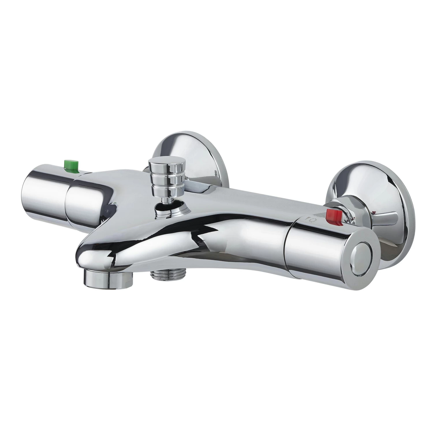 De OK thermostatische badkraan met omstelling is een kraan met een functionele insteek en is afgewerkt in het chroom. Met de thermostaatknop stel je eenvoudig de temperatuur van het water in. De kraan is tevens voorzien van keramische schijven die zorgen voor een soepele en nauwkeurige bediening van de knoppen. In tegenstelling tot kranen met kraanleertjes, vergen keramische schijven nauwelijks onderhoud. Met de omstelknop aan de bovenzijde van de kraan kan je watertoevoer regelen voor je baduitloop of je douche uitloop.