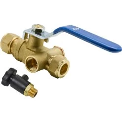 Deze Sanivesk Kogelkraan Knel + Aftap 15x15mm is geschikt voor het tijdelijk afsluiten van de waterleiding op plaatselijk niveau. De afsluiting van deze stopkraan vindt plaats door een chromede kogel, opgesloten in een afdichting van zuiver teflon. De met kunststof beklede hendel zorgt voor een eenvoudige bediening. Op de stopkraan is een mogelijkheid aanwezig een aftapper te plaatsen om het resterende water in de leiding af te tappen.