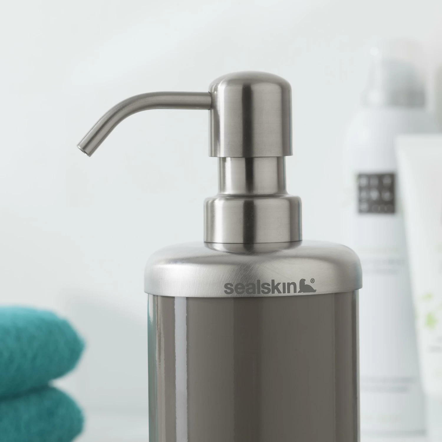 De Acero zeepdispenser van Sealskin is gemaakt van hoogwaardig roestvrij staal en heeft een moderne, elegante en tijdloze vormgeving passend in ieder interieur. De mooie zeepdispenser in de kleur taupe staat stevig en stabiel en blijft goed op zijn plek staan door de rubberen ring aan de onderzijde. De zeepdispenser is eenvoudig na te vullen.