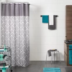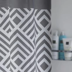 Geef je badkamer een moderne en stijlvolle uitstraling met het douchegordijn Angoli grijs van het kwaliteitsmerk Sealskin. Het is een textiel douchegordijn gemaakt van 100% polyester en is voorzien van een waterafstotende coating. Uitgevoerd in trendy grijs en met de moderne geometrische print draagt dit product bij aan de moderne uitstraling van je badkamer. De afmeting van 180×200 cm maakt je douchegordijn geschikt voor toepassing in een nis of hoek van de badkamer. Dit product is tevens machine wasbaar op 30°C.