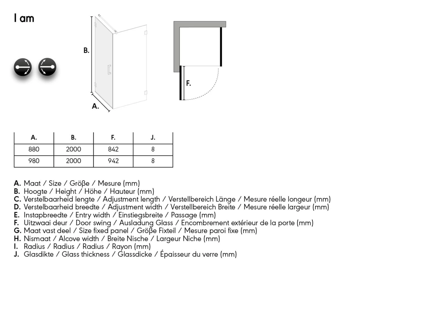 - Hoogte 200 cm, 8 mm veiligheidsglas met antikalkbehandeling