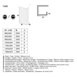 - Hoogte 200 cm, 8 mm veiligheidsglas met antikalkbehandeling