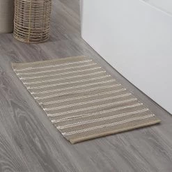 Sealskin Patan badmat linnen 60×90 cm van het kwaliteitsmerk Sealskin is gemaakt van 100% gerecyclede katoen vezels. Buiten het feit dat het een “groene” badmat is en dus een bewuste keuze, geeft de Patan badmat ook een prettig gevoel aan de voeten. De Patan badmat in de kleur linnen met witte lijnen geeft de badkamer een warme uitstraling en past in iedere gangbare badkamer. De Patan badmat is 60 bij 90 centimeter en is linnen met wit gestreept, dit geeft een warm en knus effect. Deze badmat is goed wasbaar op 30 graden.