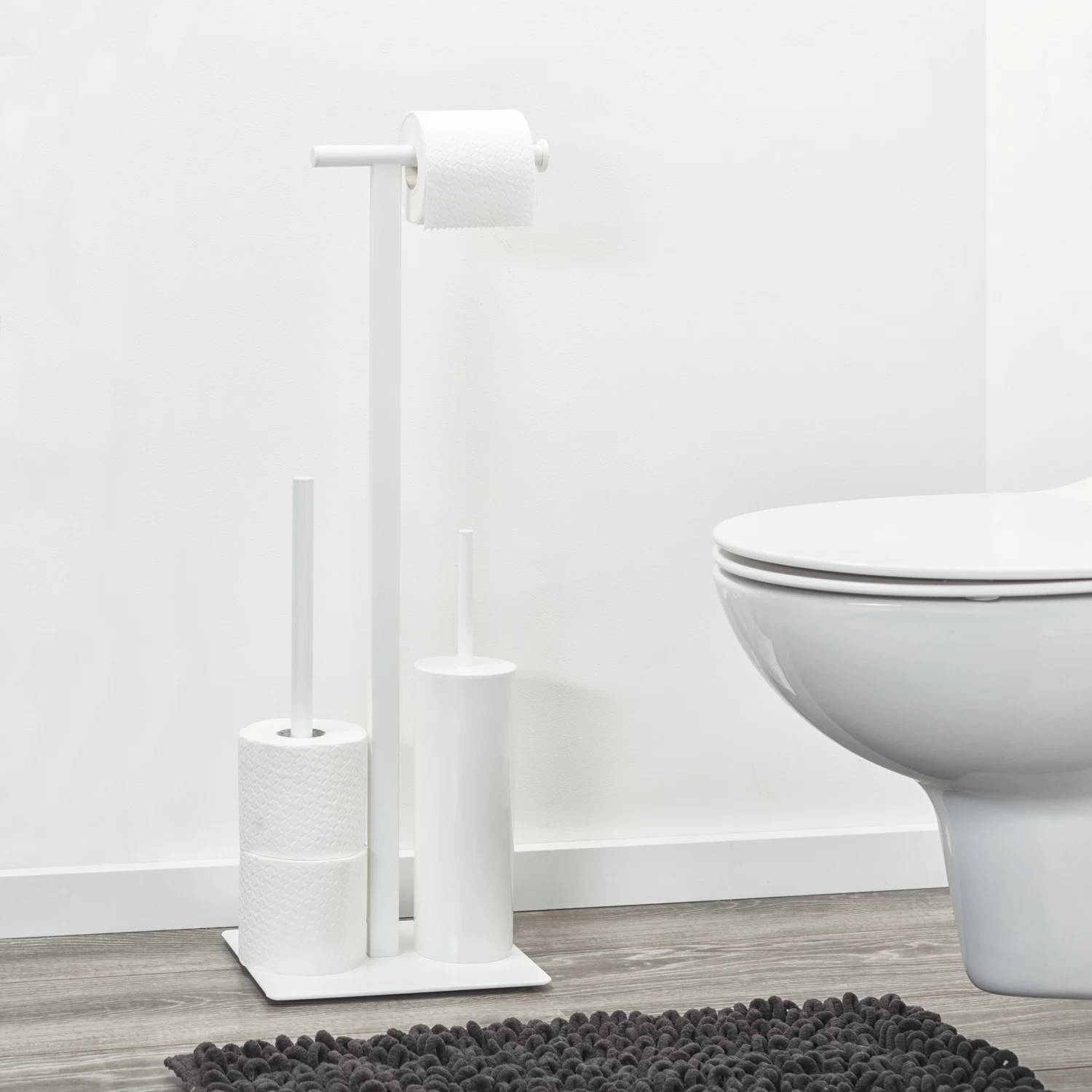 - Toiletborstelhouder, toiletrolhouder en reserverolhouder in één