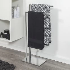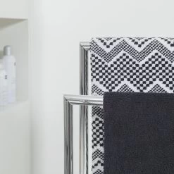 Dankzij deze Sealskin Tube Dubbele Handdoekhouder Chroom heb je altijd minimaal 2 handdoeken binnen handbereik. Je kunt er natuurlijk ook gewoon je kleding aan/over hangen. Deze houder is gemaakt van stijlvol verchroomd metaal, maar je kunt hem in de KARWEI webshop ook in de witte variant kopen. Standaard heeft hij 1 jaar garantie en dankzij de montagehandleiding zet je hem eenvoudig zelf in elkaar. Je haalt het maximale uit dit handdoekrek als je er regelmatig met een vochtige doek overheen gaat. De handdoekhouder is 45,5 cm breed, 81 cm hoog en 19,7 cm diep.